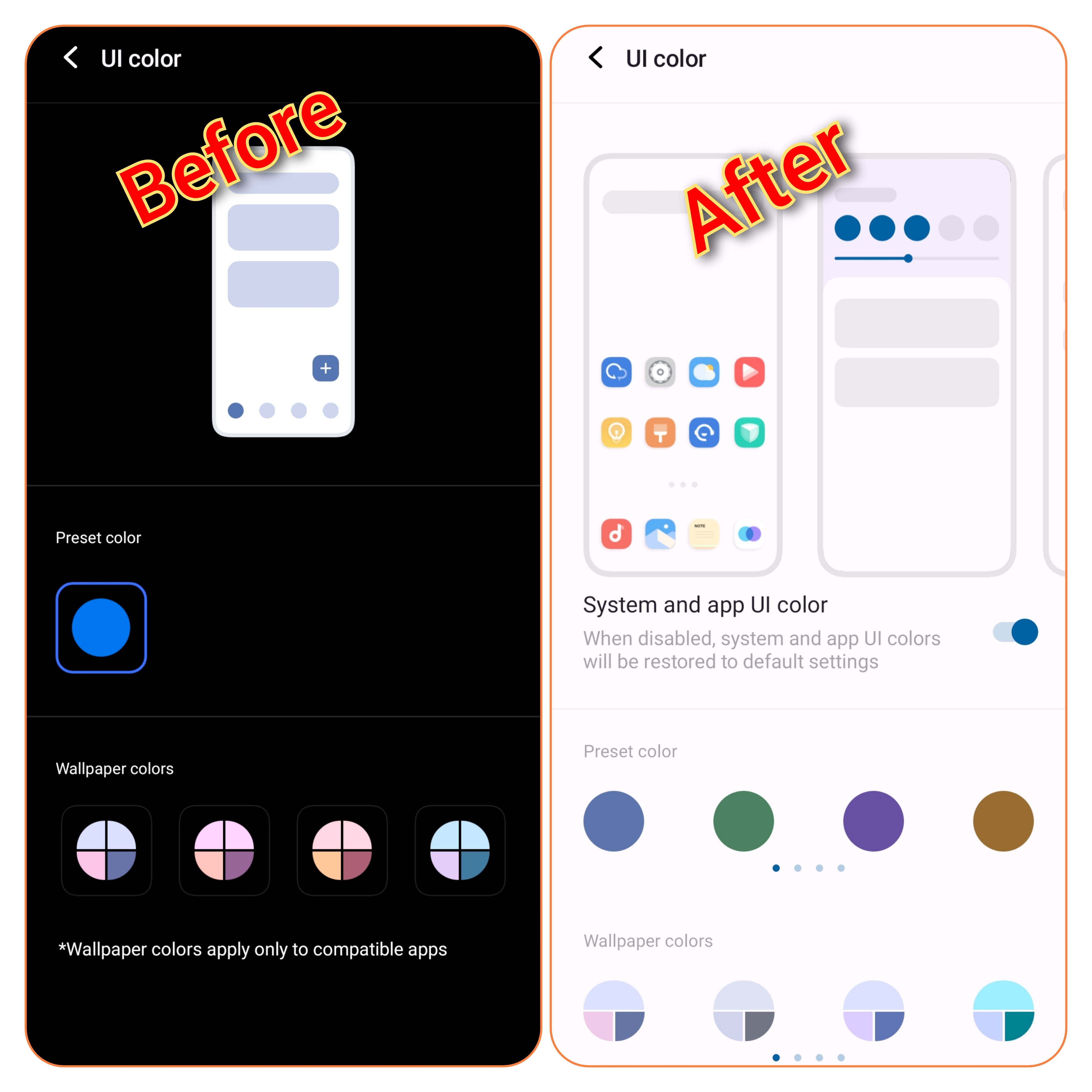 Previously we had only one " Colour " and 4 " wallpaper colours " in the UI Colour Section. But in this new update you can see 16 colour options in " present colour " & 16 colour options in " Wallpaper Colours "