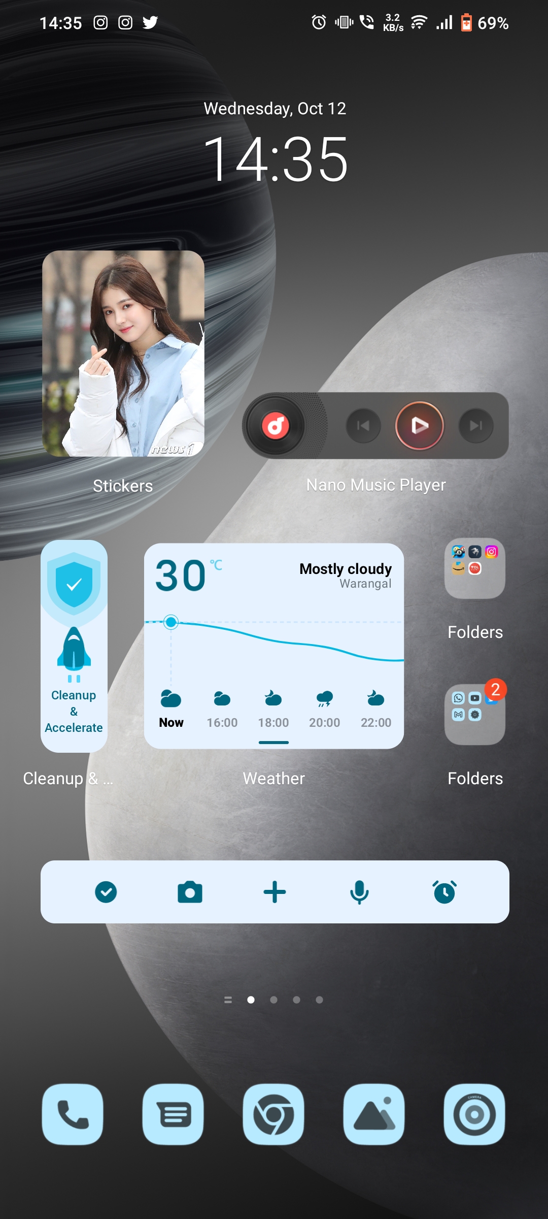 There isn't lots of changes in Home screen. As we can change UI Colour then the widgets on home screen looks good. They added AQI card in whether which tells how is the Air quality in your area. When we apply the UI Colour there is a option to apply them on system apps too.