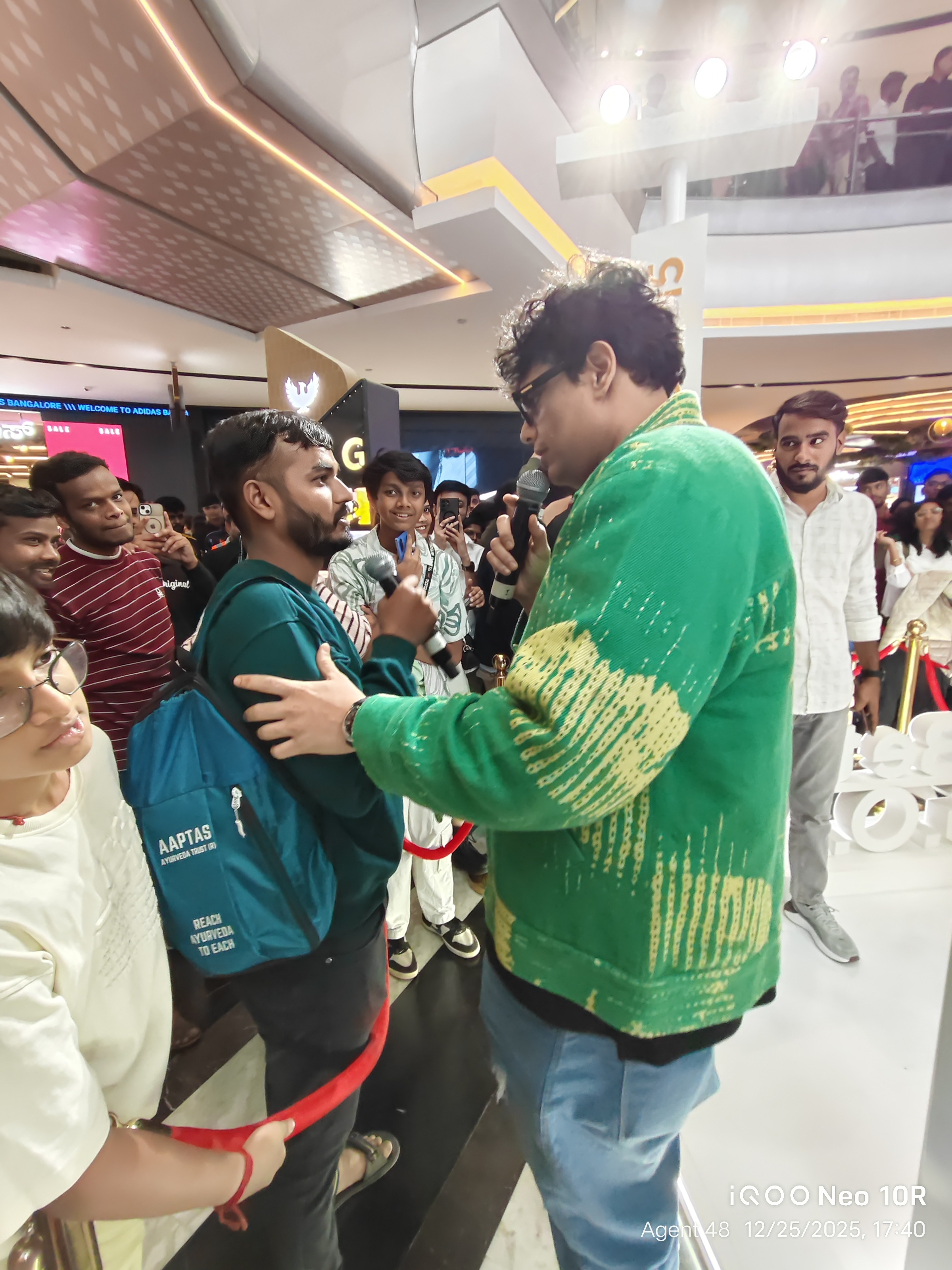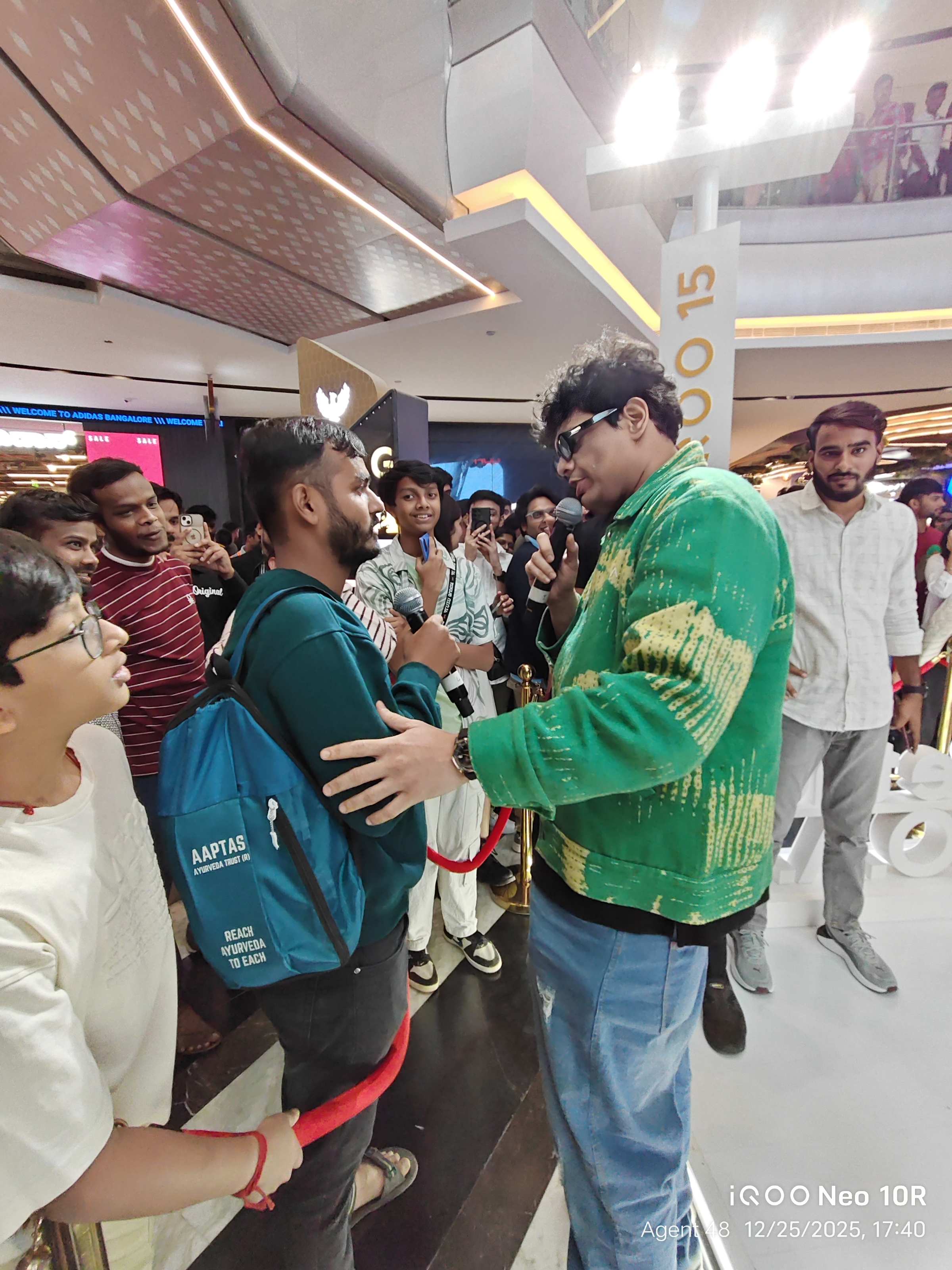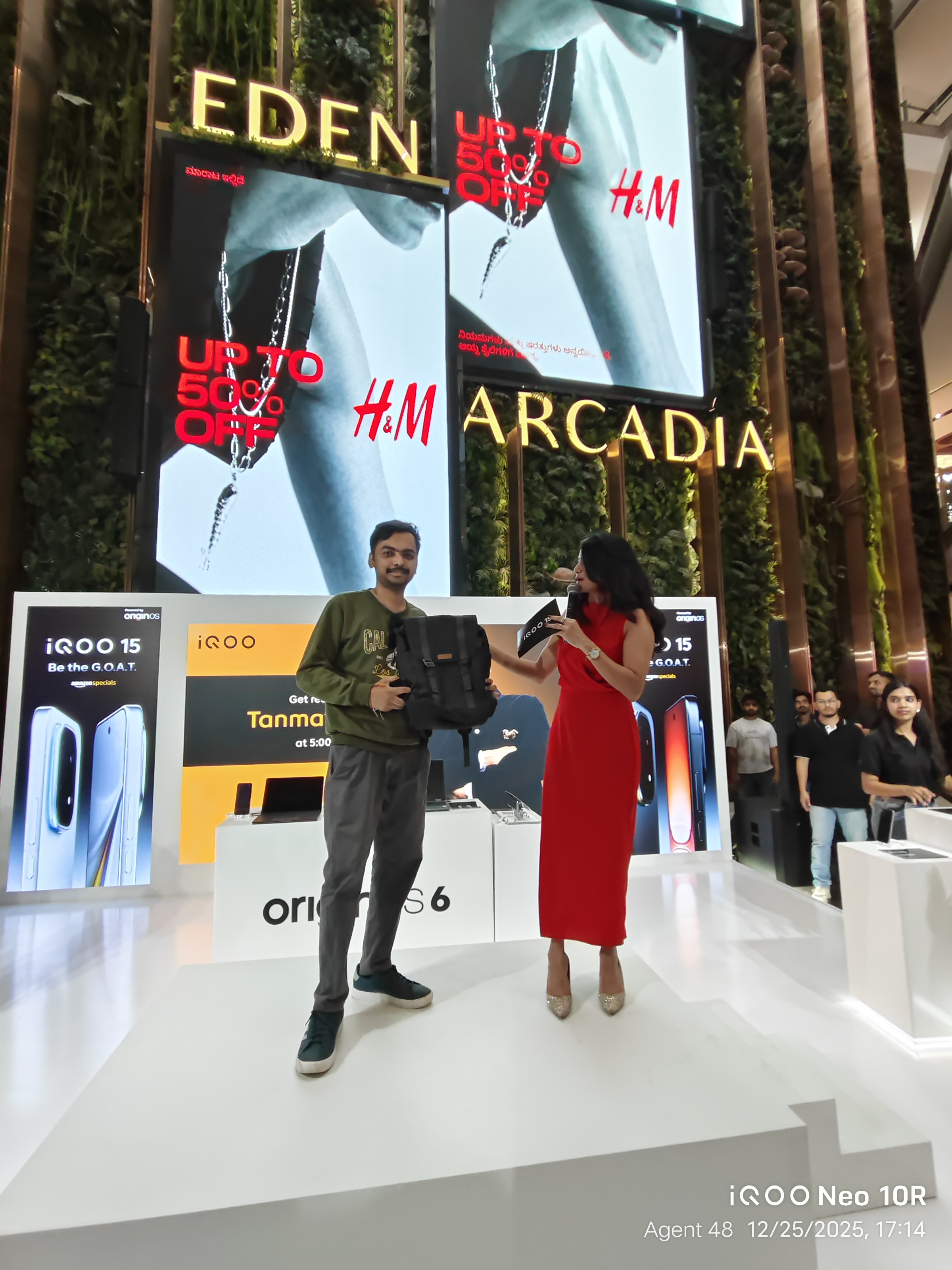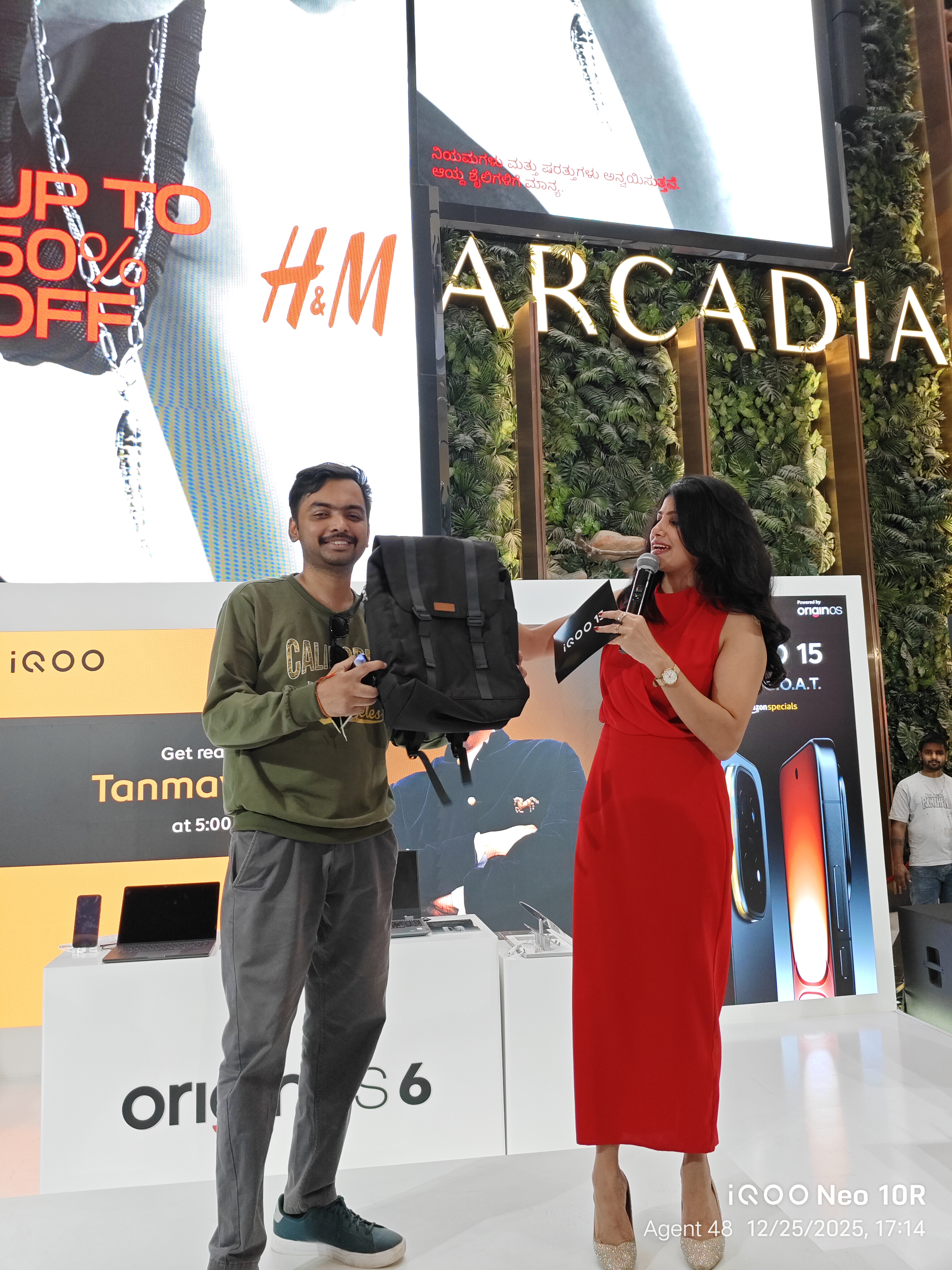 To summarize, the host asked a few questions, and the winners received Qool Iqoo bags. Mr. Tanmay then requested a few audiences to call someone and complete a specific activity, after which the winners received Qool Iqoo bags.