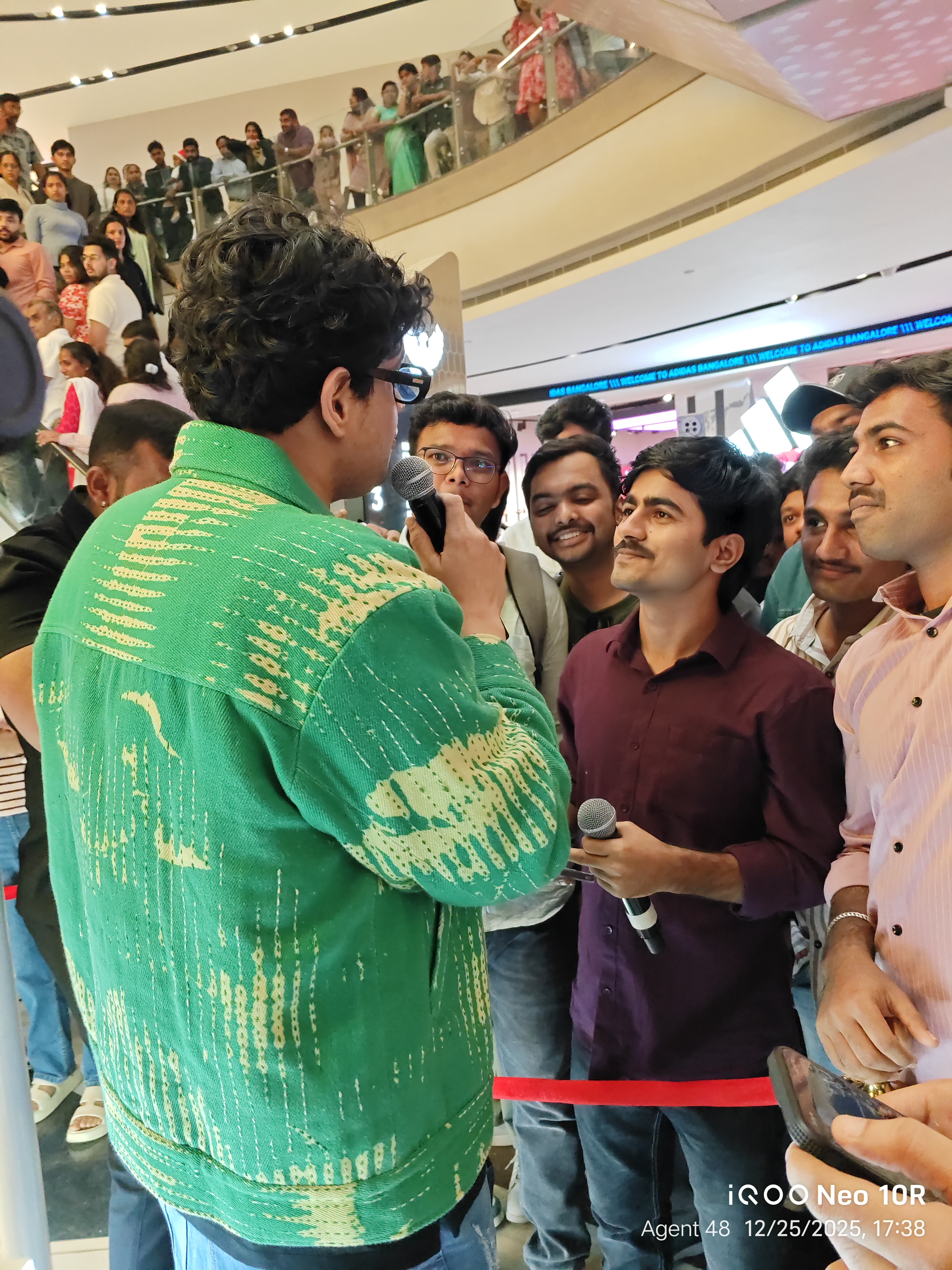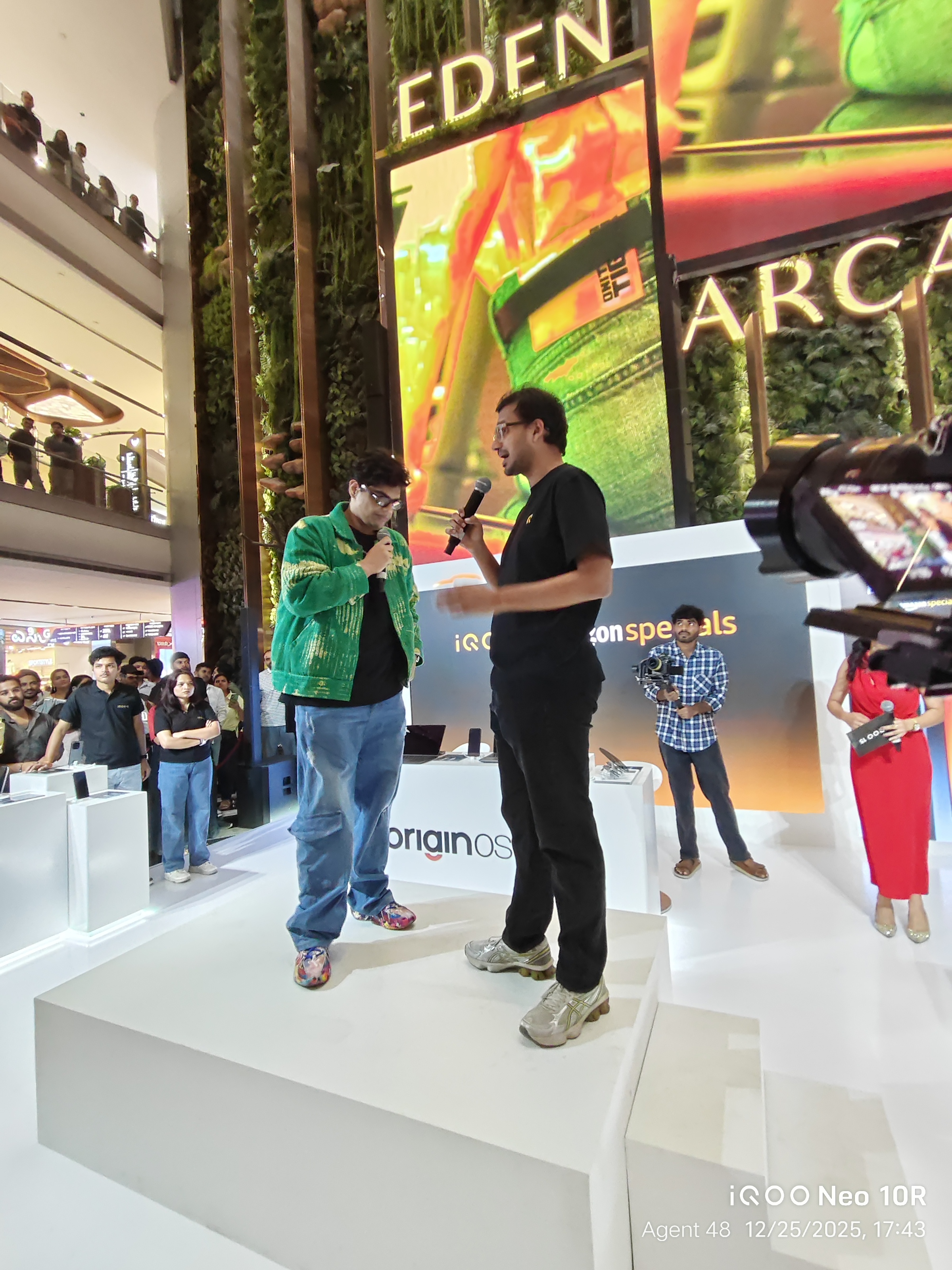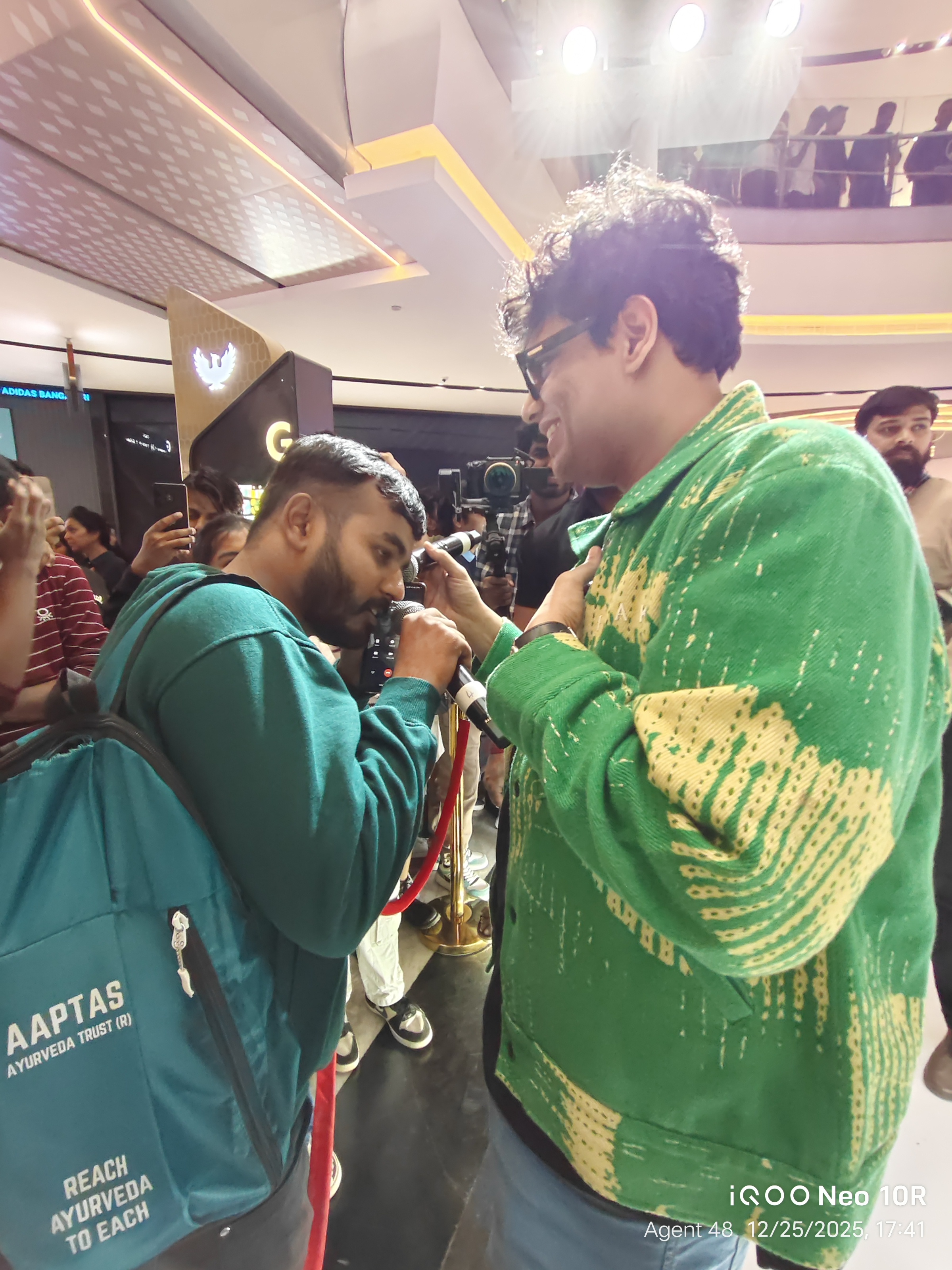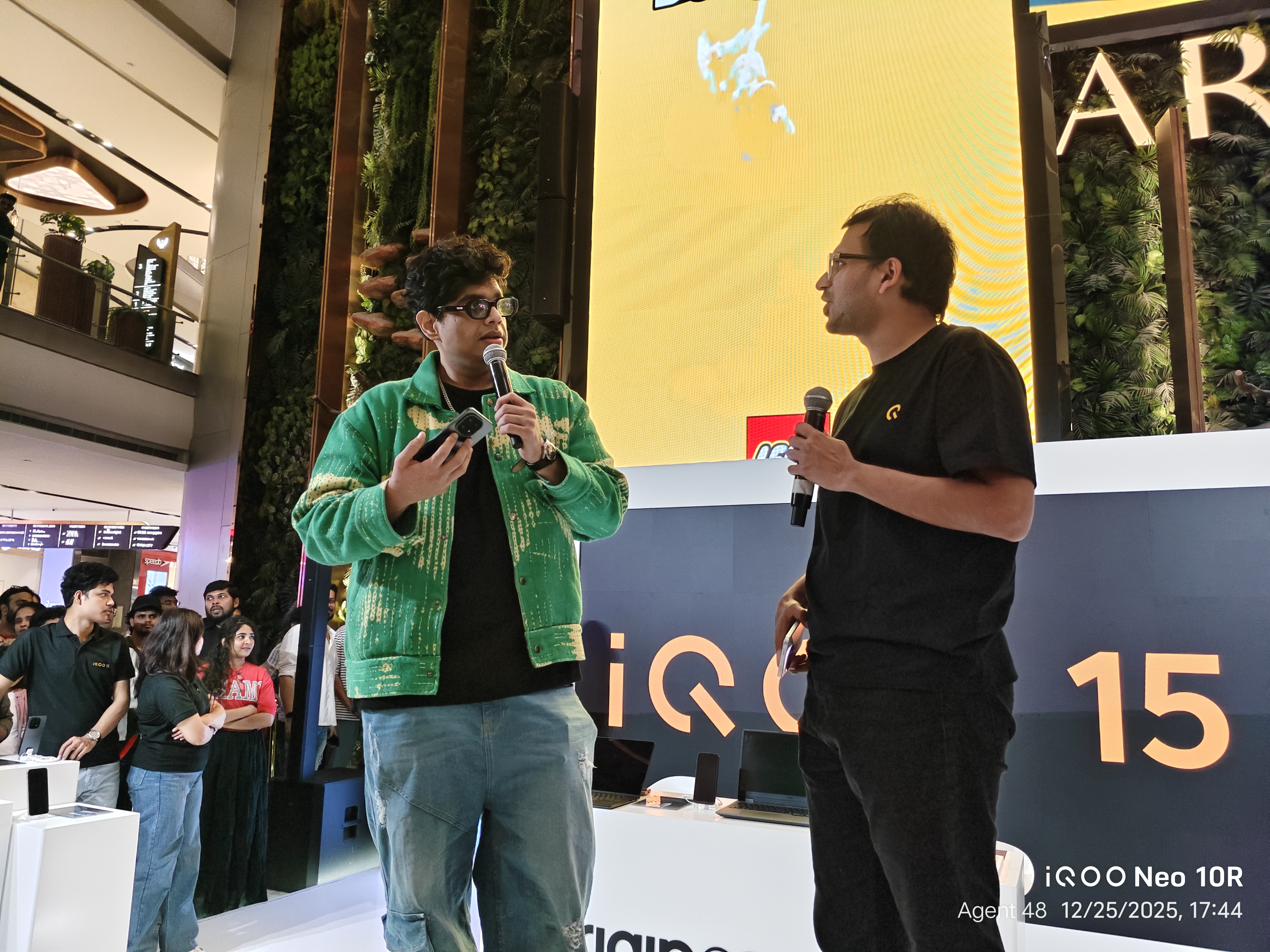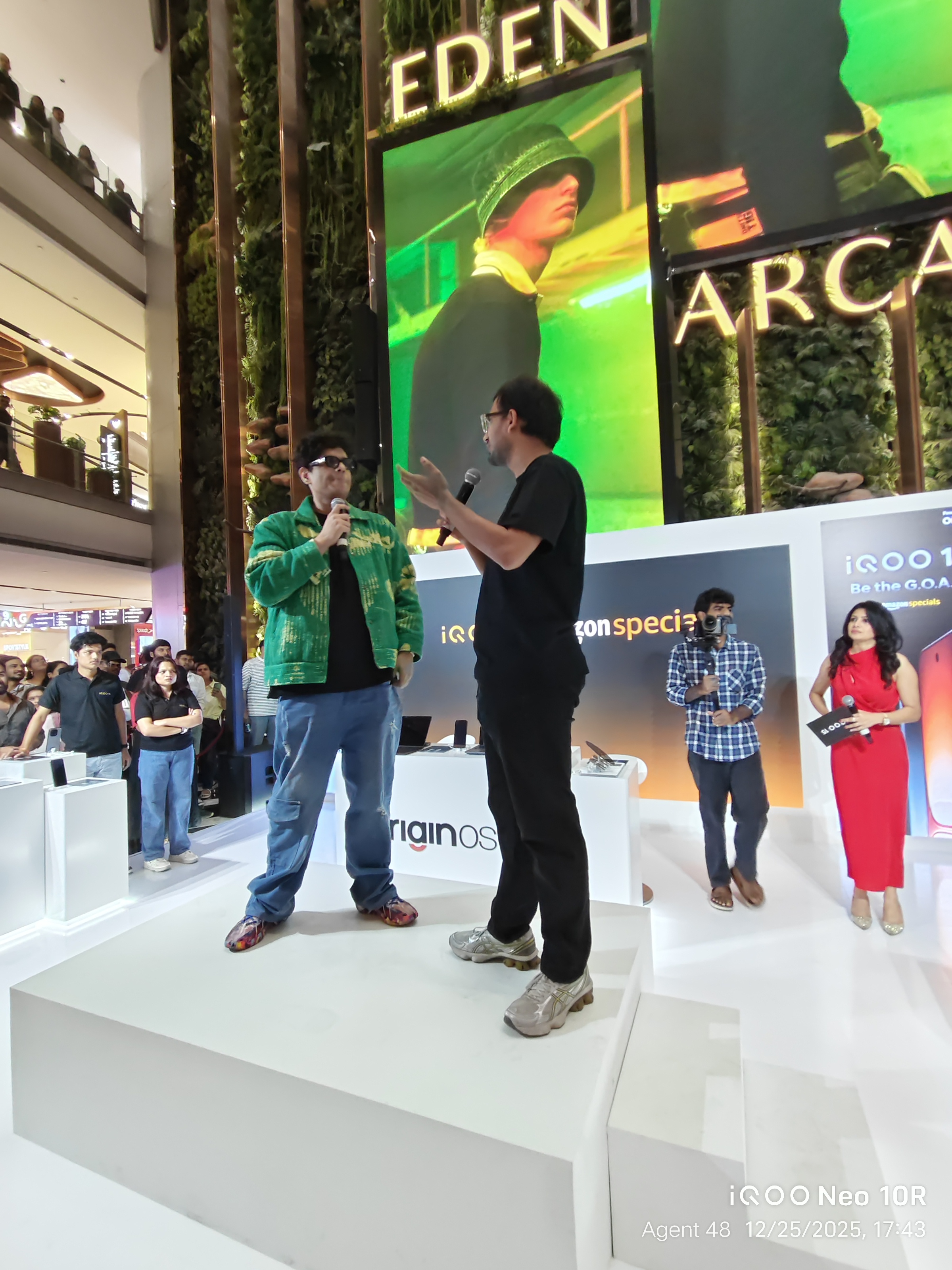 To summarize, the host asked a few questions, and the winners received Qool Iqoo bags. Mr. Tanmay then requested a few audiences to call someone and complete a specific activity, after which the winners received Qool Iqoo bags.