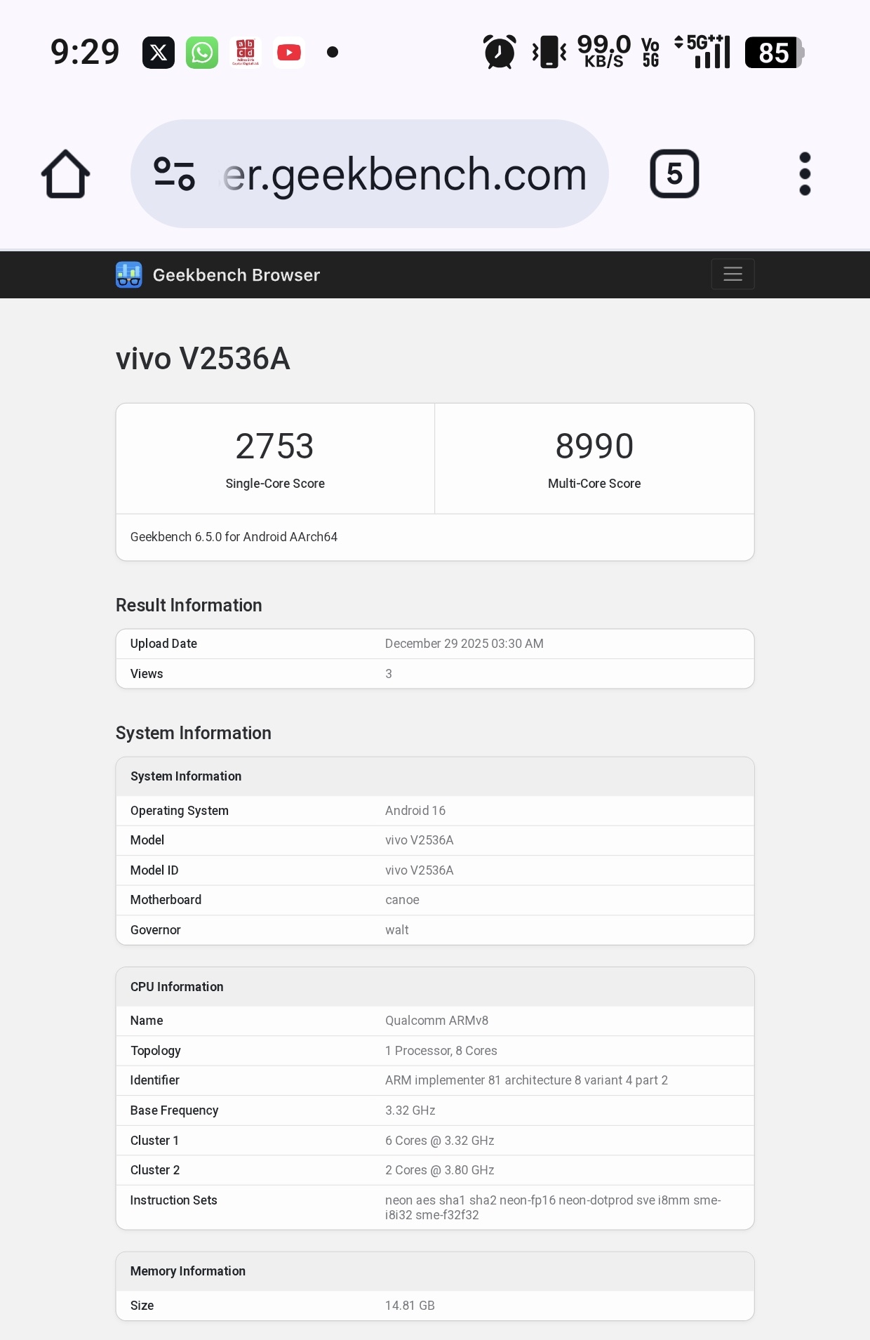 The iQOO Z11 Turbo (V2536A) has appeared on Geekbench, and the specs suggest it’s built for performance. With the Snapdragon 8 Gen 5, a big battery, fast charging, and several flagship-level features, the Z11 Turbo looks ready for gaming, speed, and all-day power. Check out the full expected specifications below.