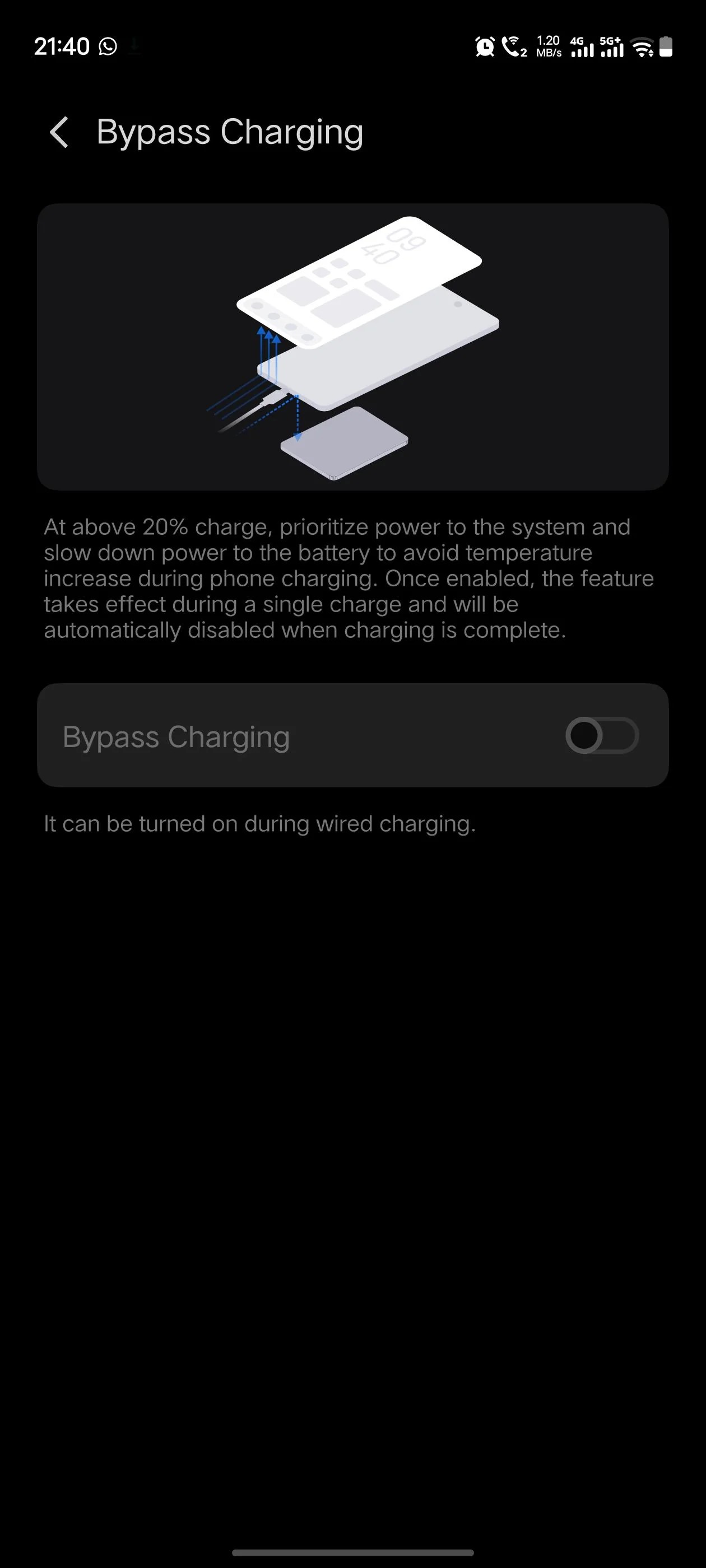 Bypass Charging changes the route: the electricity goes directly to the motherboard/processor, skipping the battery entirely. Your battery percentage stays still while your phone runs on "wall power" like a desktop PC.