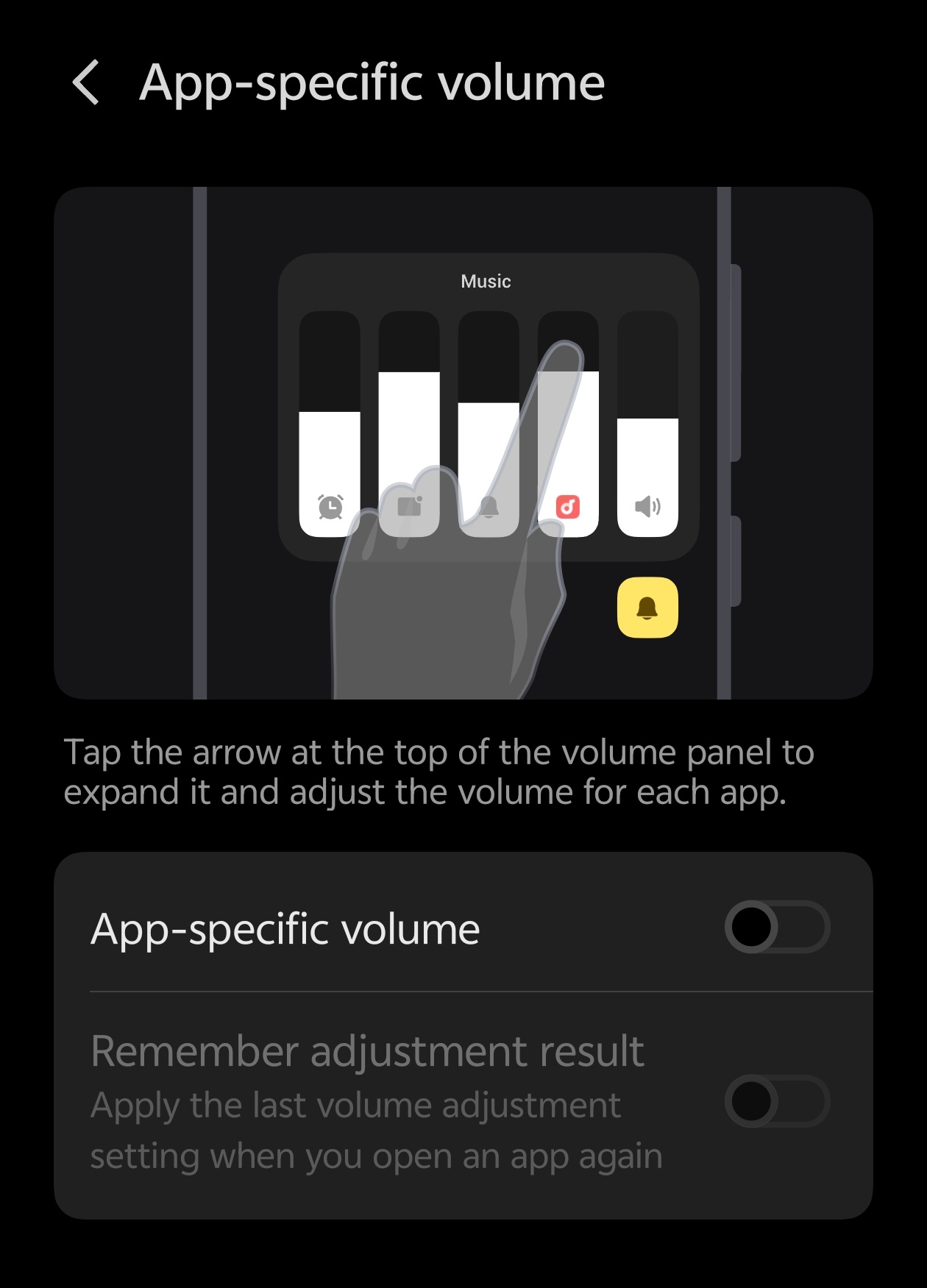 Step 1: The Setup ⚙️ Head into your device Settings and look for Sound & Vibration. Scroll down until you find "Volume adjustment per app" (or similar wording depending on your specific model). Toggle this switch to ON.
