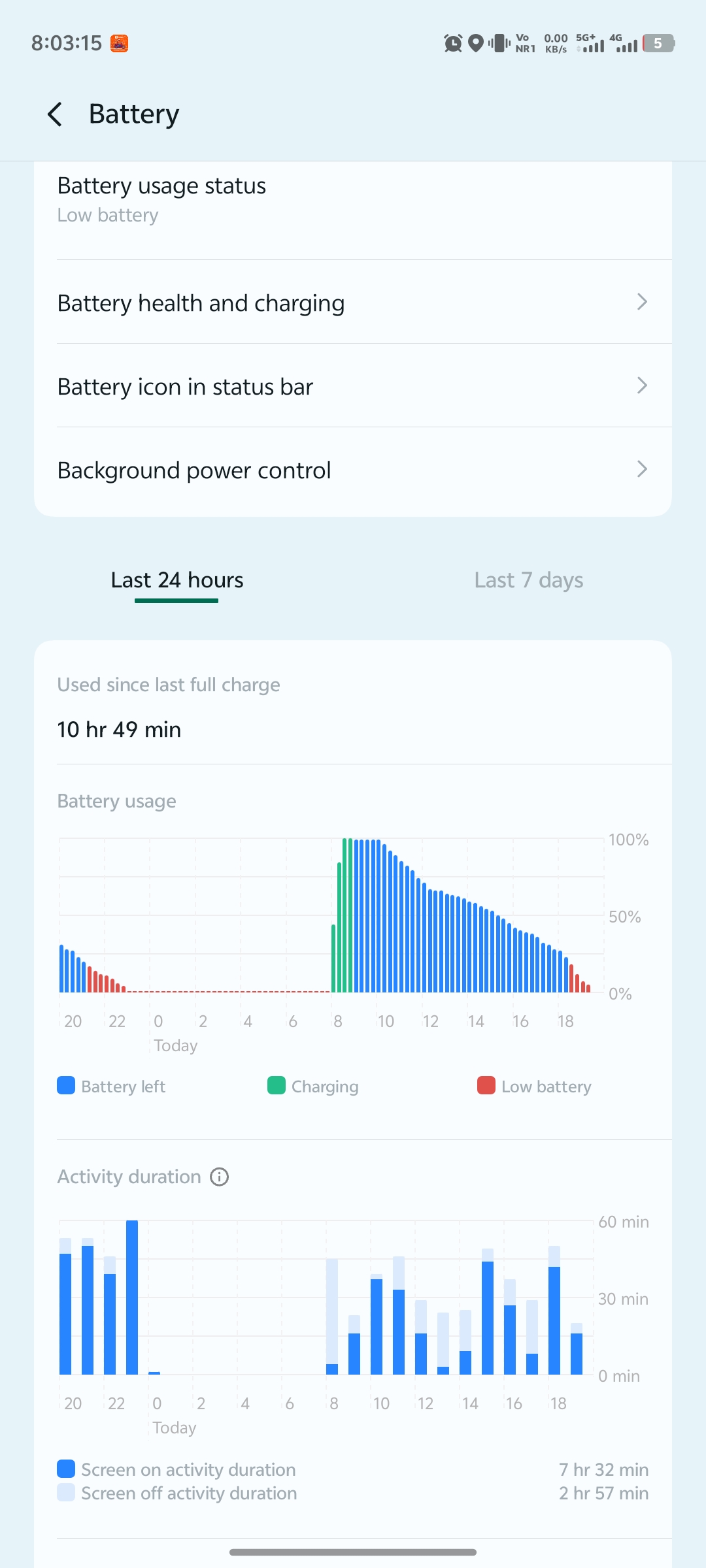Battery usage: 100% → 5%