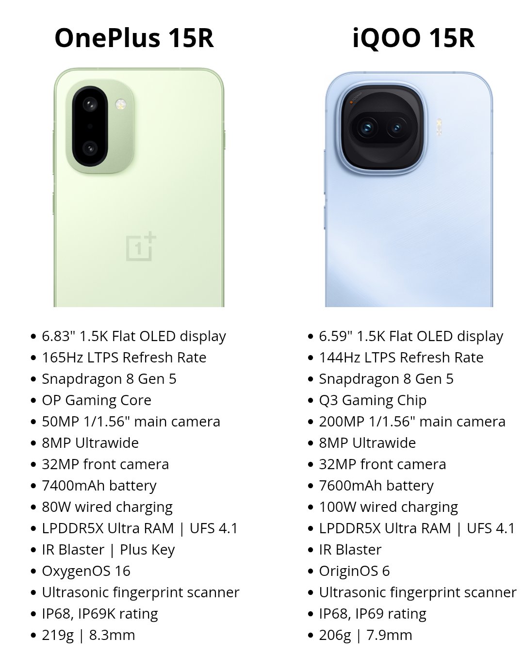 The iQOO 15R is expected to launch in India Soon, and here I’m comparing its specifications with the OnePlus 15R. Hope this helps you make a better choice.