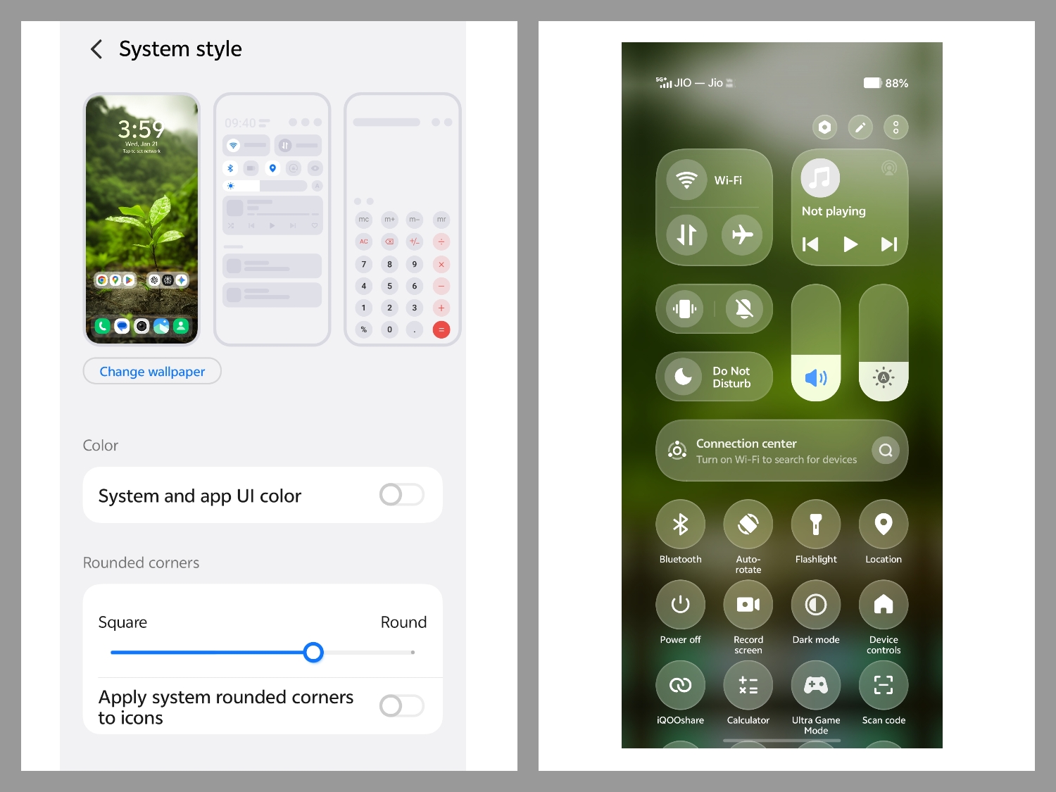 Path: Settings > Home screen, lock screen & wallpaper > System styles