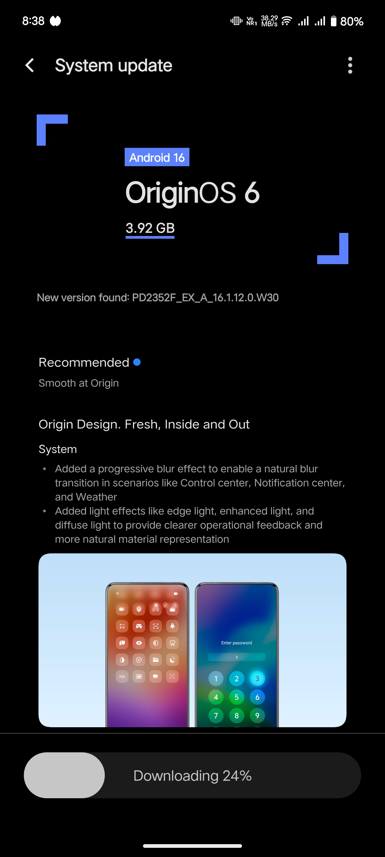 Finally got the origin OS 6 trial version update.