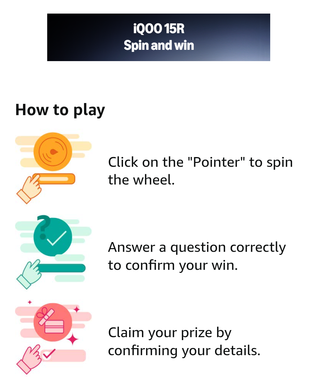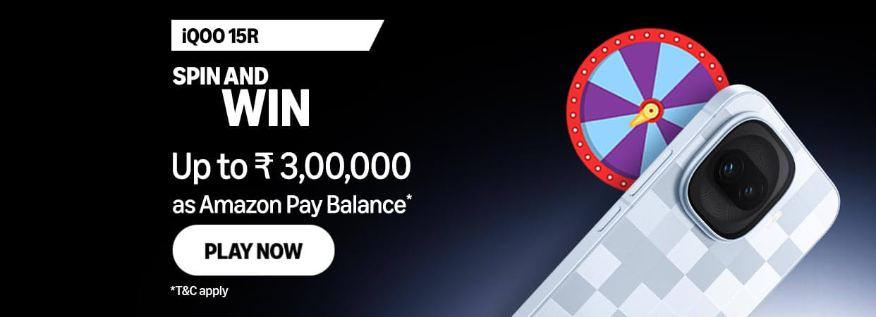 Amazon is running an Exciting 'Spin and Win' Quiz for the Upcoming iQOO 15R. Participants have a chance to win* up to ₹3,00,000 as Amazon Pay balance🤑