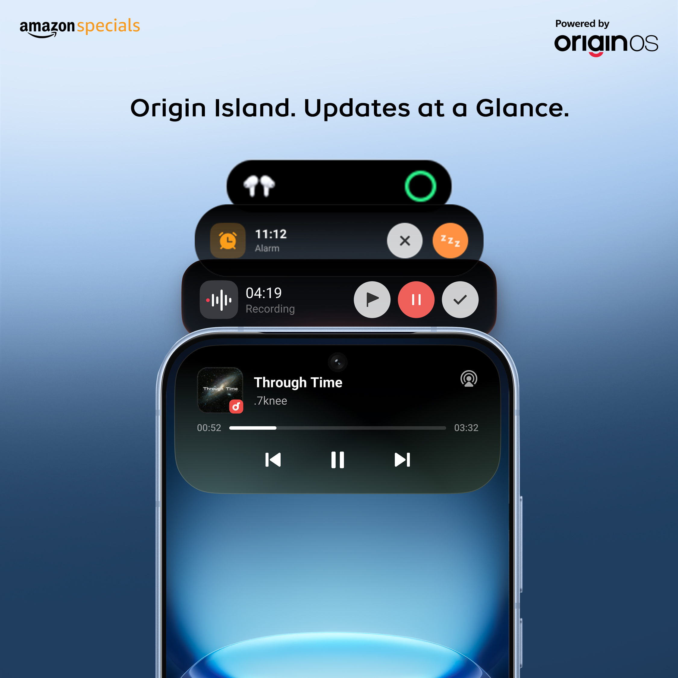 Origin Island focuses on reducing clutter while ensuring users stay connected to essential information without constantly switching between apps or screens.