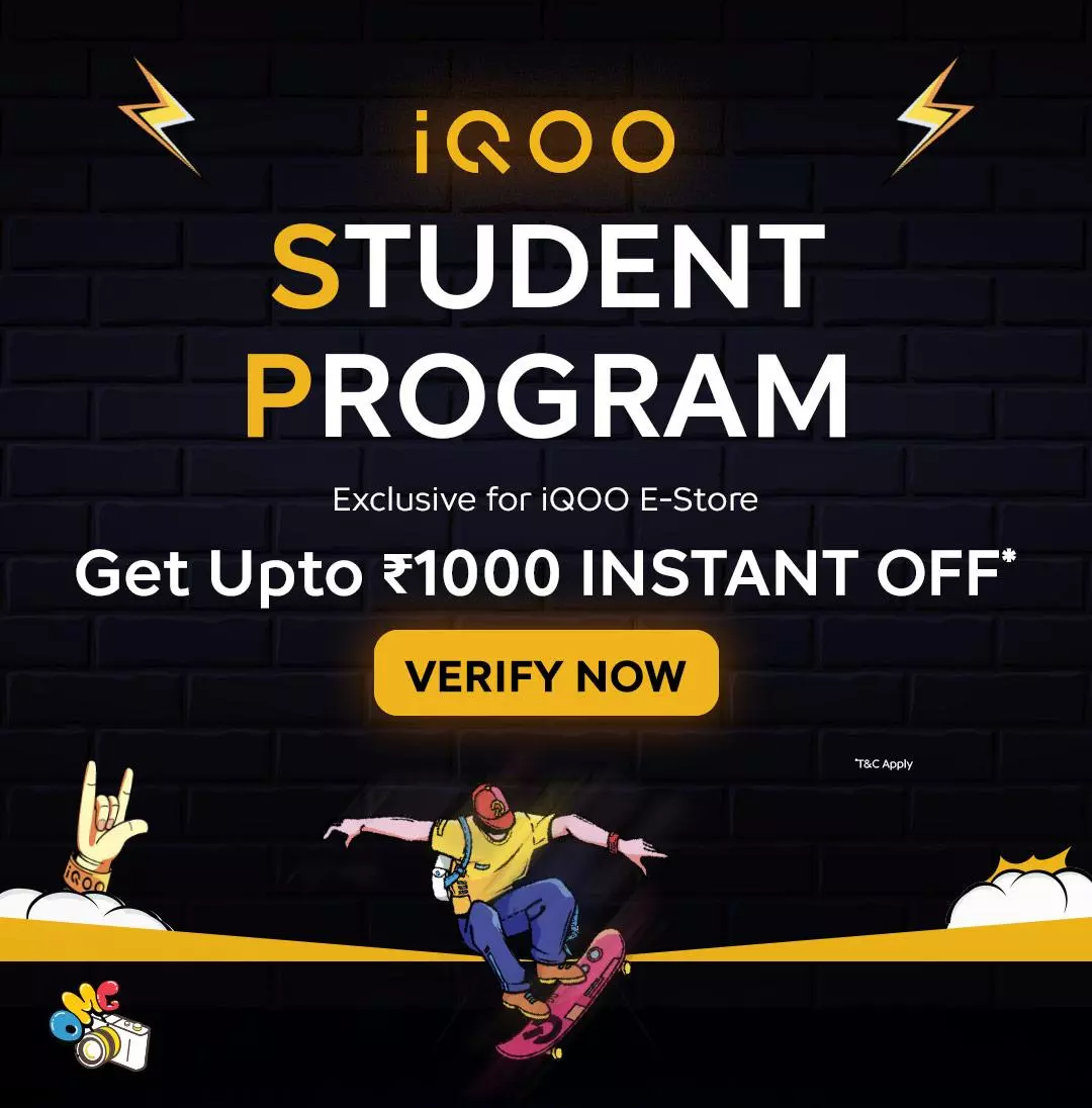 iQOO has introduced the iQOO Student Program, an exclusive offer for students purchasing smartphones from the iQOO E-Store. This program is designed to make premium smartphones more affordable for students by offering instant discounts of up to ₹1000 on eligible iQOO devices. The offer is available only for a limited time and is subject to eligibility and verification.
