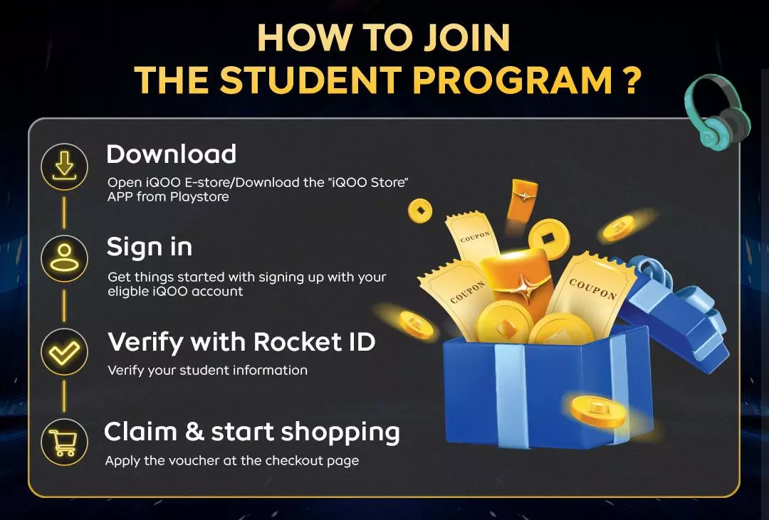 To join the iQOO Student Program, students need to download the iQOO app or visit the iQOO E-Store, sign in with their account, and complete student verification using a supported verification service. Students must provide valid proof of enrolment, such as a student ID or official enrolment document. Once verified, eligible students can instantly unlock exclusive coupon codes for discounts on selected smartphones.