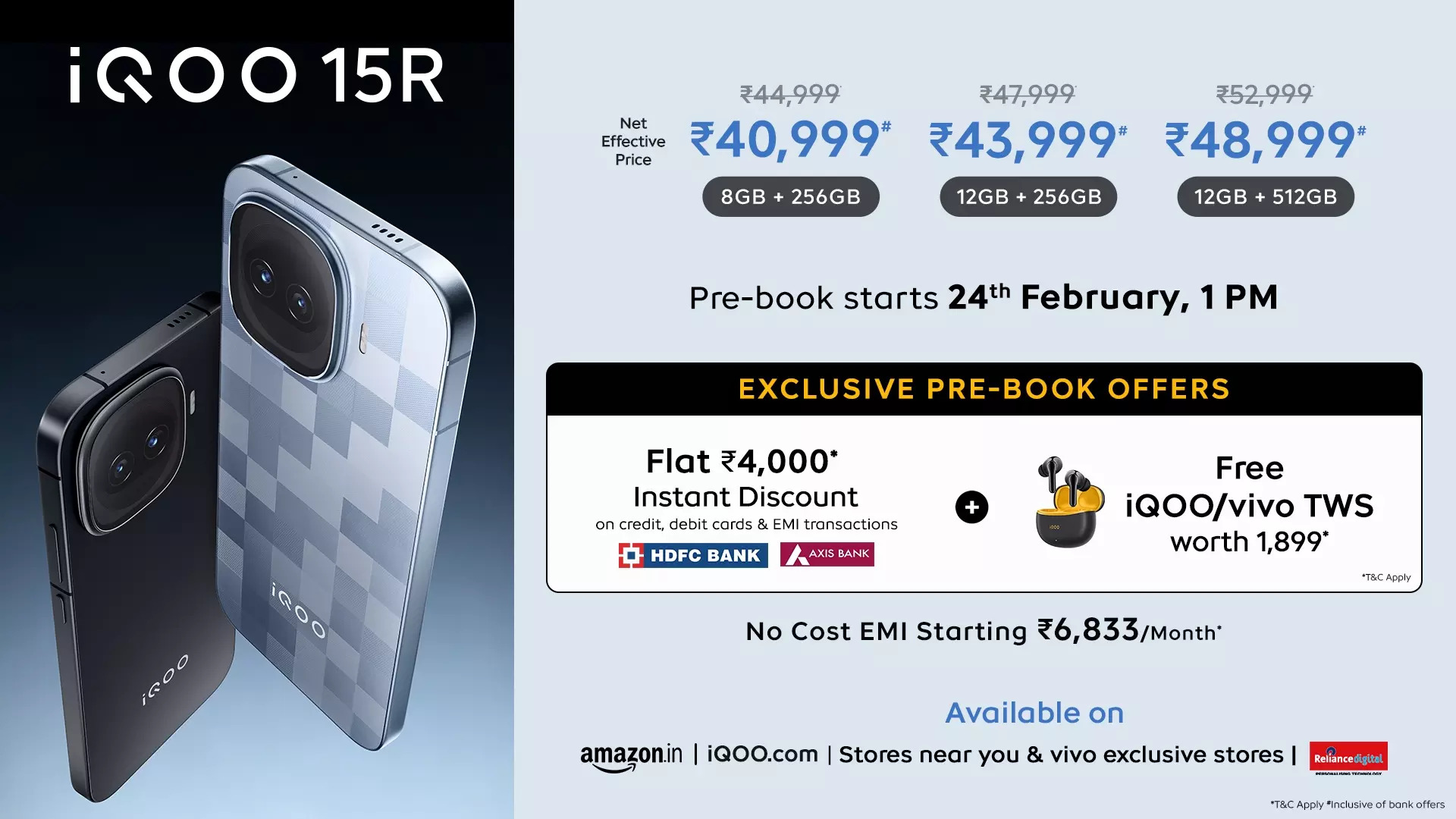 Pre-booking is live now, and sales begin from March 3 across Amazon, iQOO E-store, and select offline retail stores.
