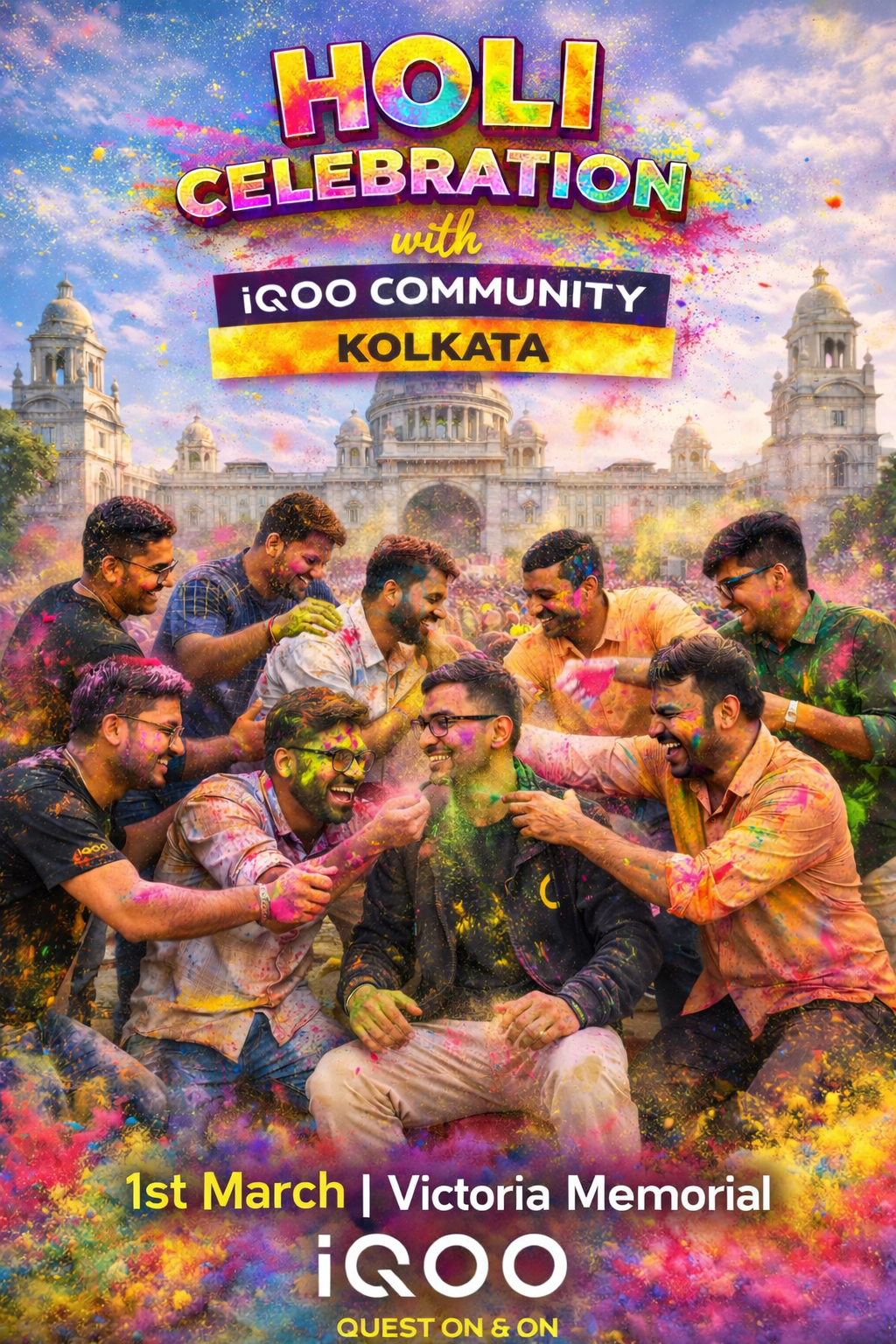 The Holi Get-Together with Kolkata Questers on 1st March was a perfect mix of festivity, friendship, and technology. From the exciting iQOO 15R unboxing to the colorful Holi play and memorable photo sessions, every moment was filled with happiness.