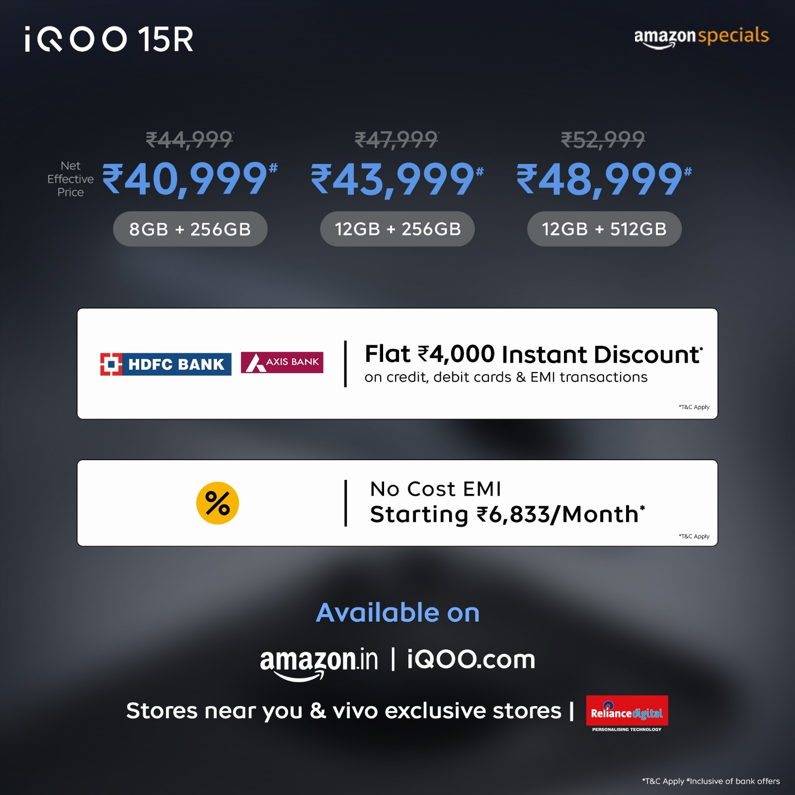 Available on Amazon.in, iQOO.comĀ , and Reliance Digital stores near you.