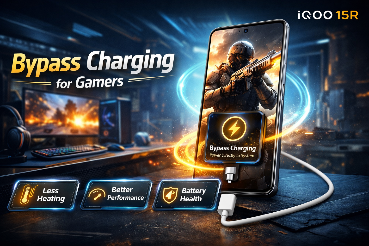 Mobile gaming has become more intense than ever. Popular games like BGMI, COD Mobile, and Ginshin Impact require long gaming sessions, which often leads to overheating and faster battery drain. This is where the Advanced Bypass Charging feature in the iQOO 15R becomes extremely useful for gamers.
