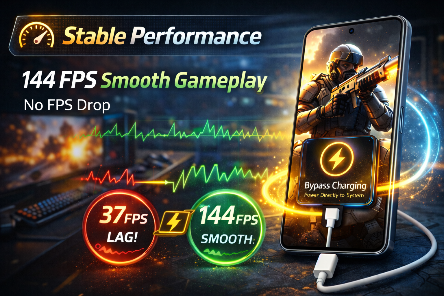 Normally, when you play games while charging, the battery generates extra heat. With Bypass Charging, power goes directly to the device, which significantly reduces heating.