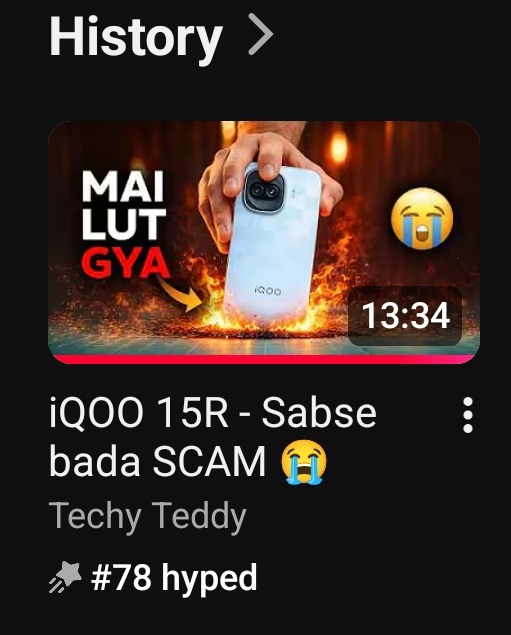 Hey team this is me Techexpress....Just came across a trending video (#78 on hype) where the creator compares iQOO 15R with OnePlus 15R and even calls the iQOO 15R a “scam.” I watched the full video to understand the points being raised. Sharing it here as community feedback so the team can check the claims, see what issues were mentioned (heating, charging, performance comparison, etc.), and clarify or improve if needed. I’ll list the specific points from the video below one by one.