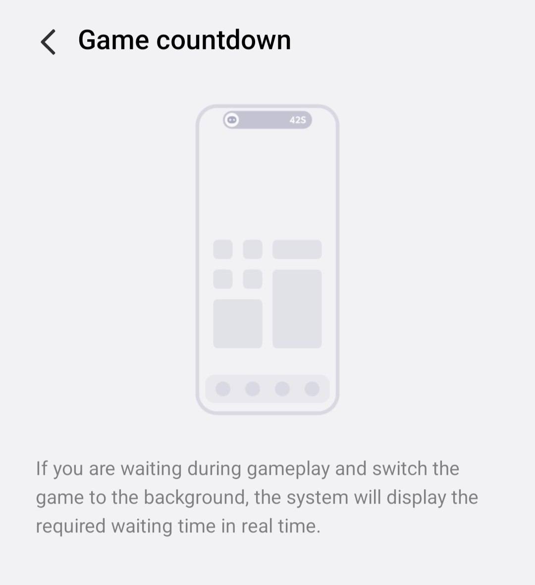 OriginOS 6 introduces a Game Countdown feature inside Ultra Game Mode. When you switch a game to the background while waiting (like matchmaking or respawn time), the system shows the remaining waiting time in real-time.