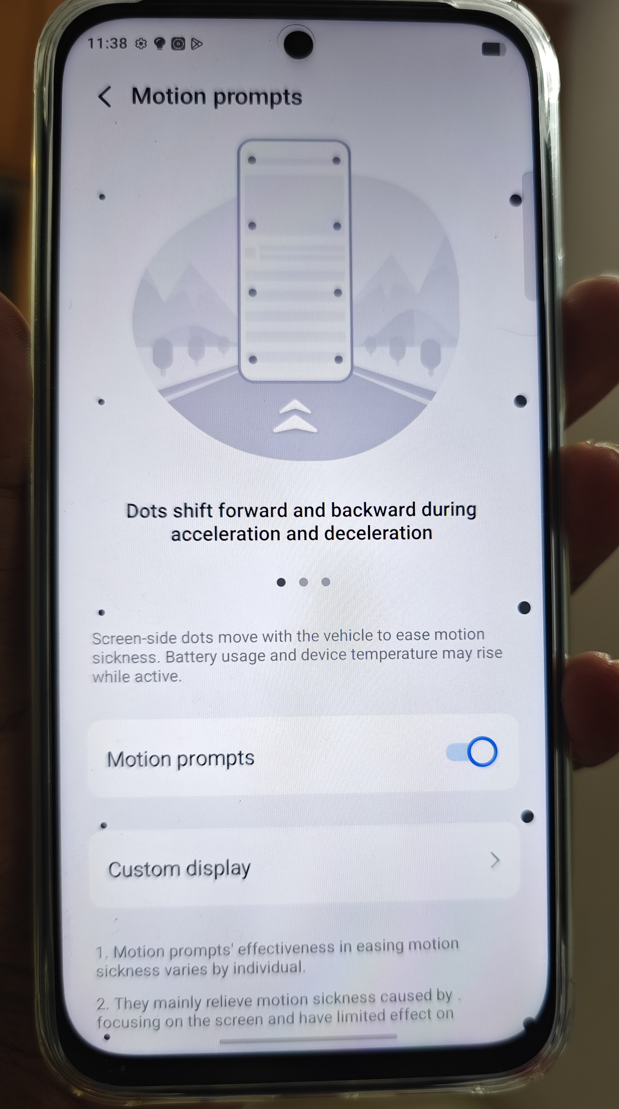 This helps reduce motion sickness when using the phone in a moving vehicle.