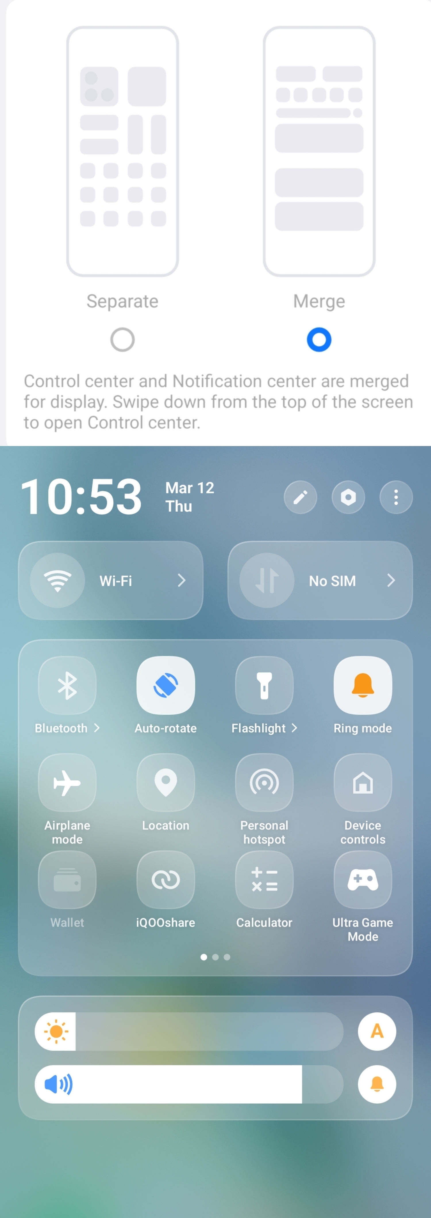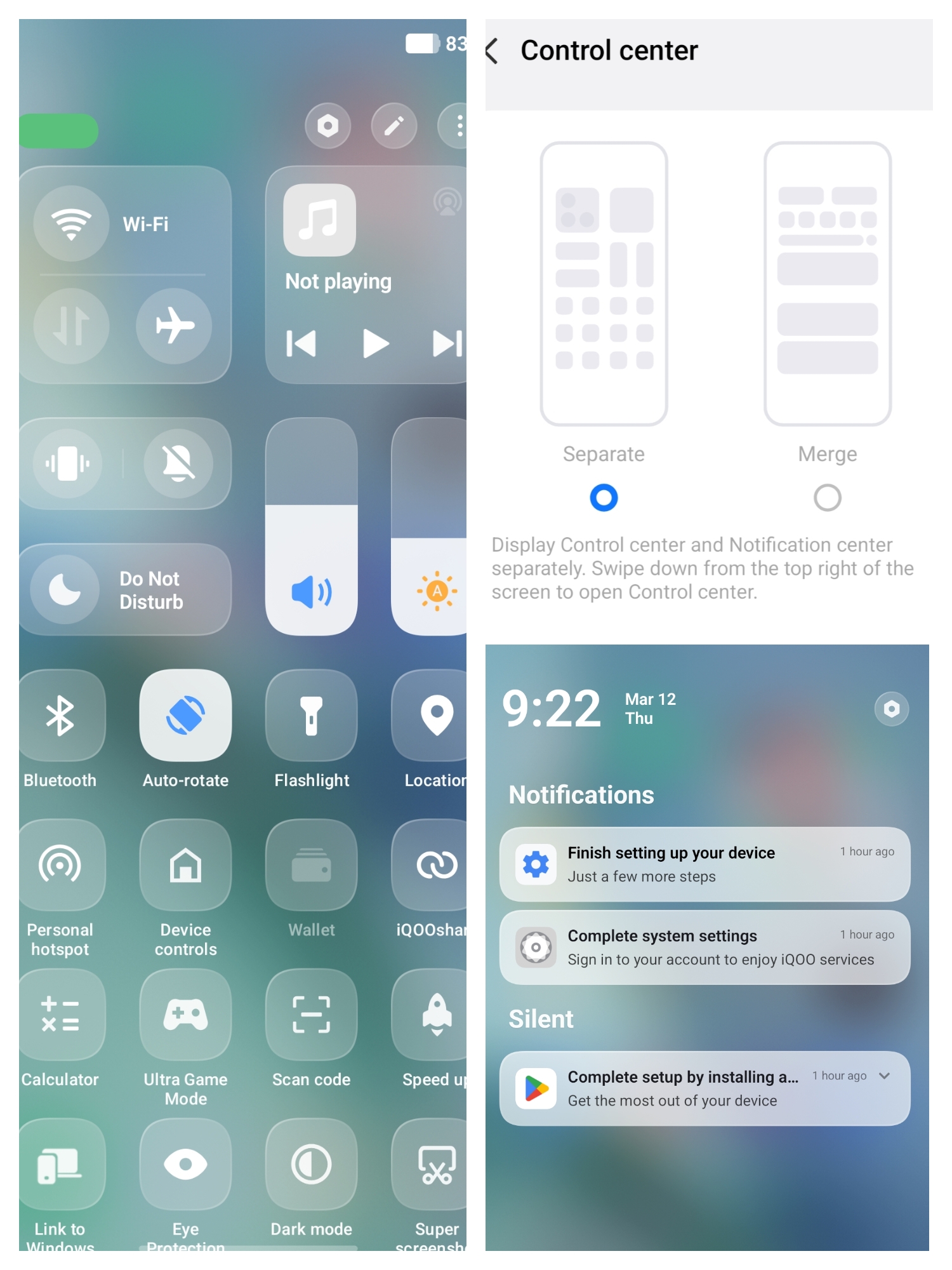 OriginOS also introduces two styles for the Notification Panel and Control Center: