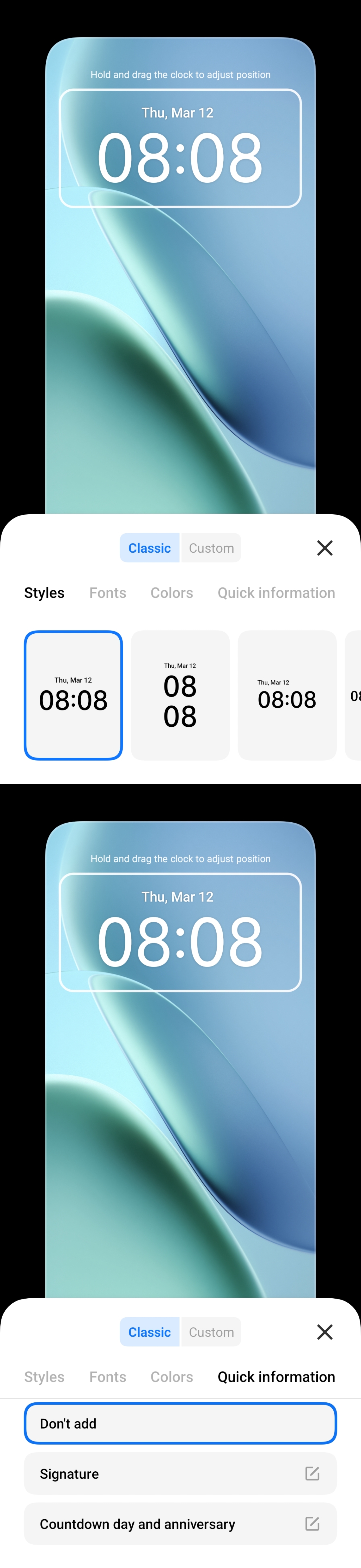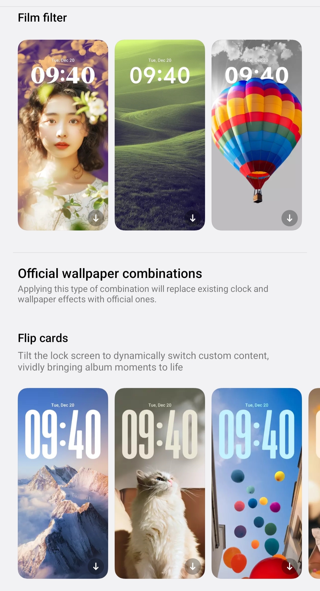 You can choose from different wallpapers, colorful themes, and film-style filters you can also combine the wallpapers, giving your lock screen a completely fresh look. The clock itself is highly customizable - you can adjust the style, font, colors, and layout, and even freely move its position to match your wallpaper perfectly.