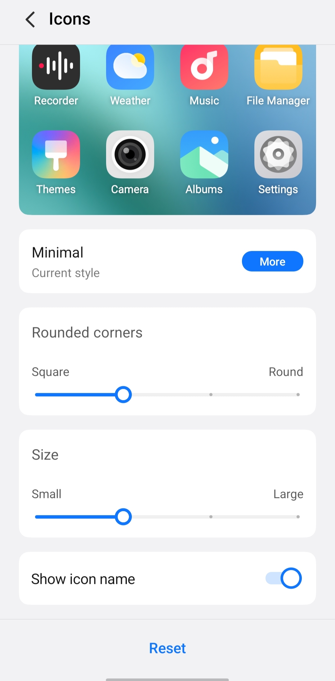 OriginOS offers some really nice system style customization options. You can easily change the system and app UI colors to match your wallpaper or choose your own preferred color.
