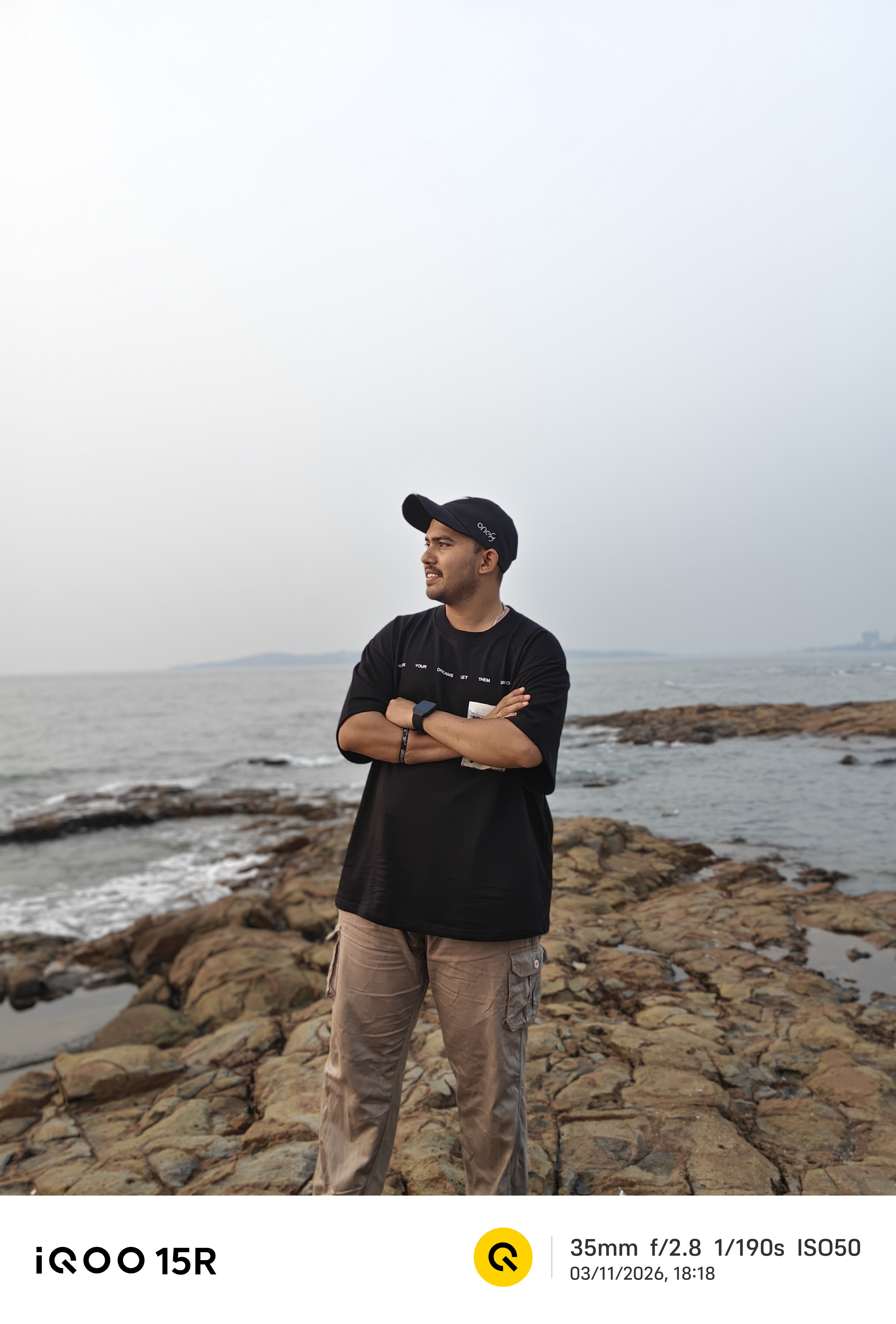 After spending some time shooting portraits with the iQOO 15R, I was genuinely impressed with how well the camera handles different portrait scenarios. I tested it in both sunset conditions near the rocky coastline and bright daylight while capturing traditional portraits, and the results were consistently good. The camera manages to keep the subject sharp while maintaining a pleasant background blur, which gives the photos a very clean and professional look.