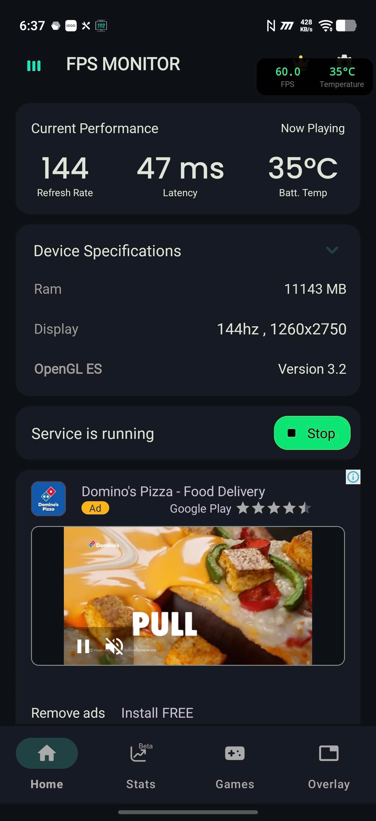 You may see a small advertisement, then the FPS monitor overlay will start running.