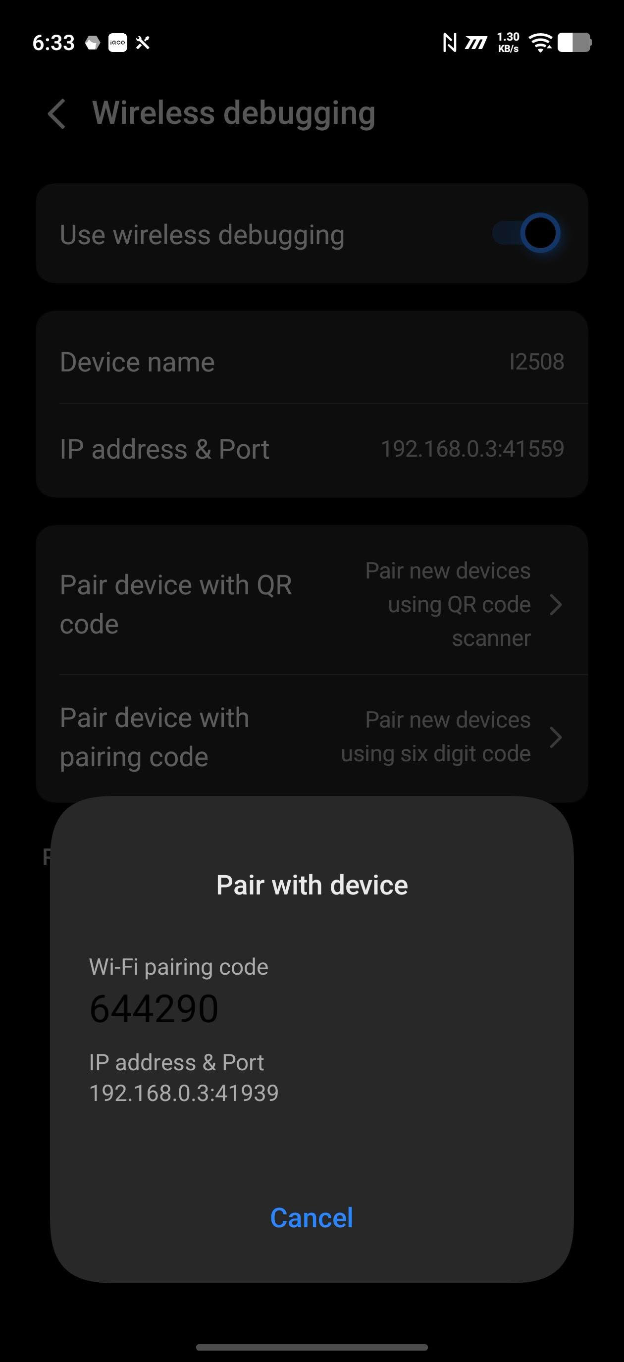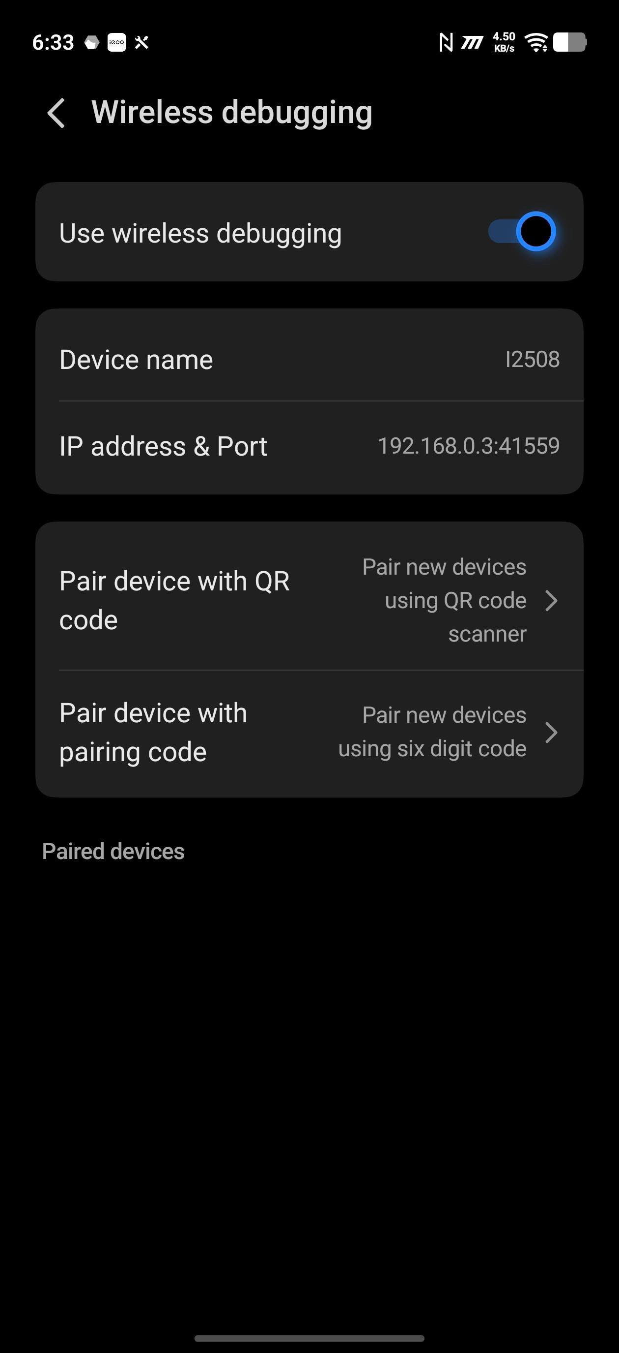Now go to Settings → Developer Options and turn on Wireless Debugging.