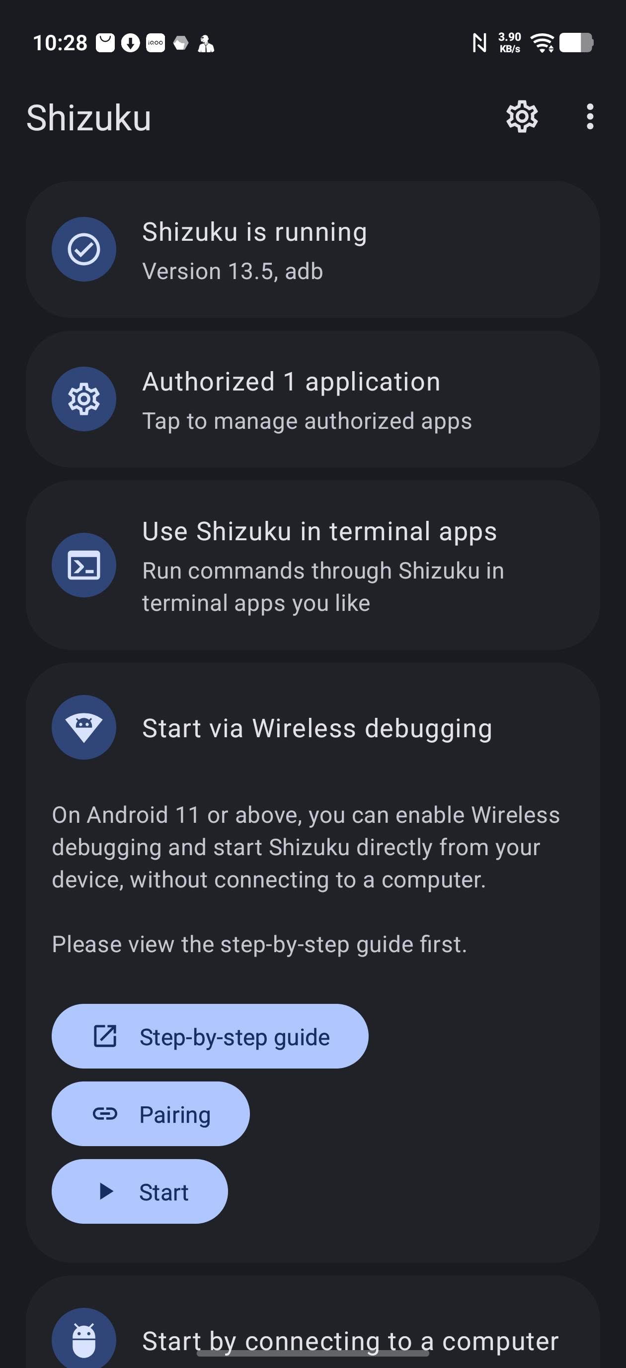 Go back to the Shizuku app and press Start.