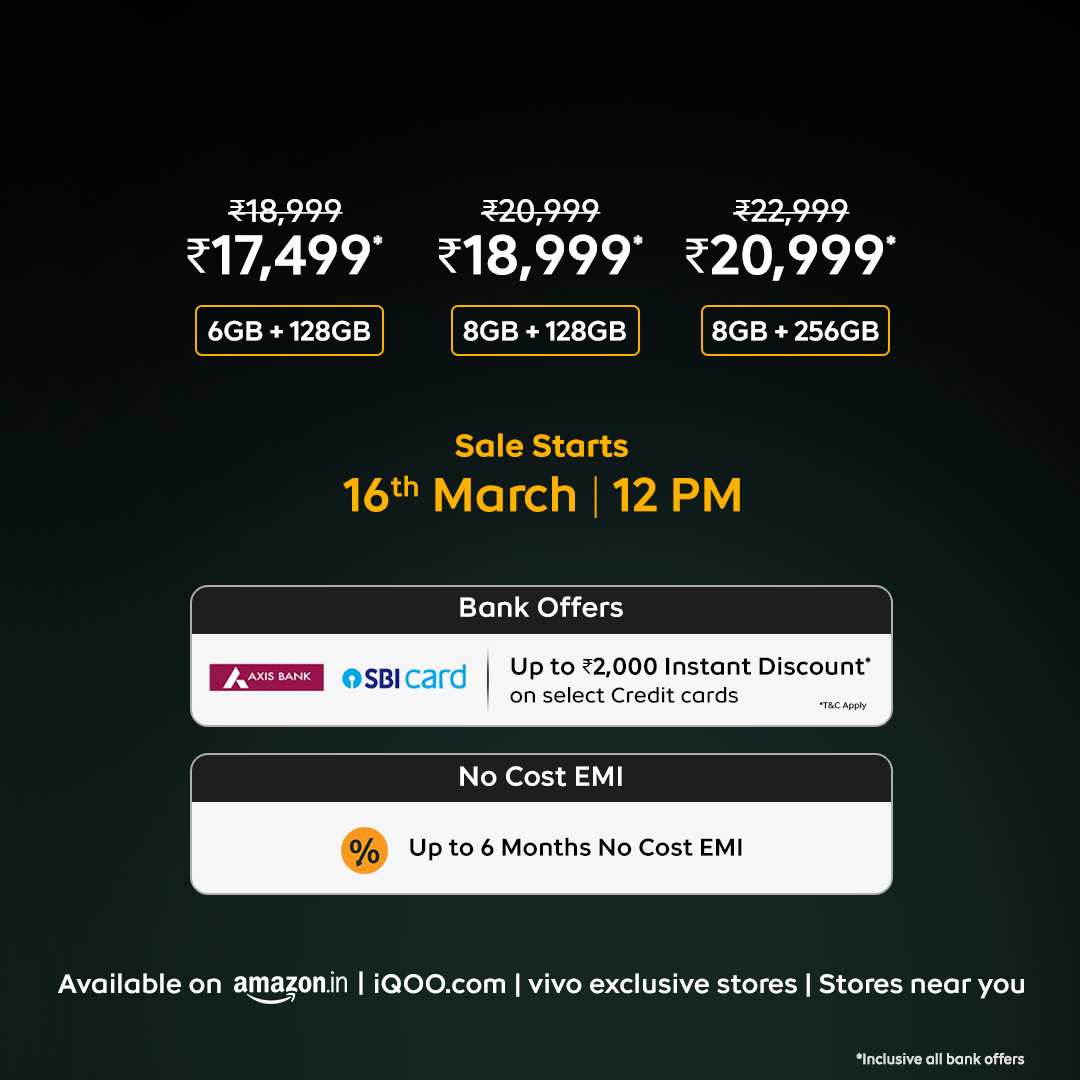 It will be available through Amazon.in and iQOO India eStore starting from March 16th.