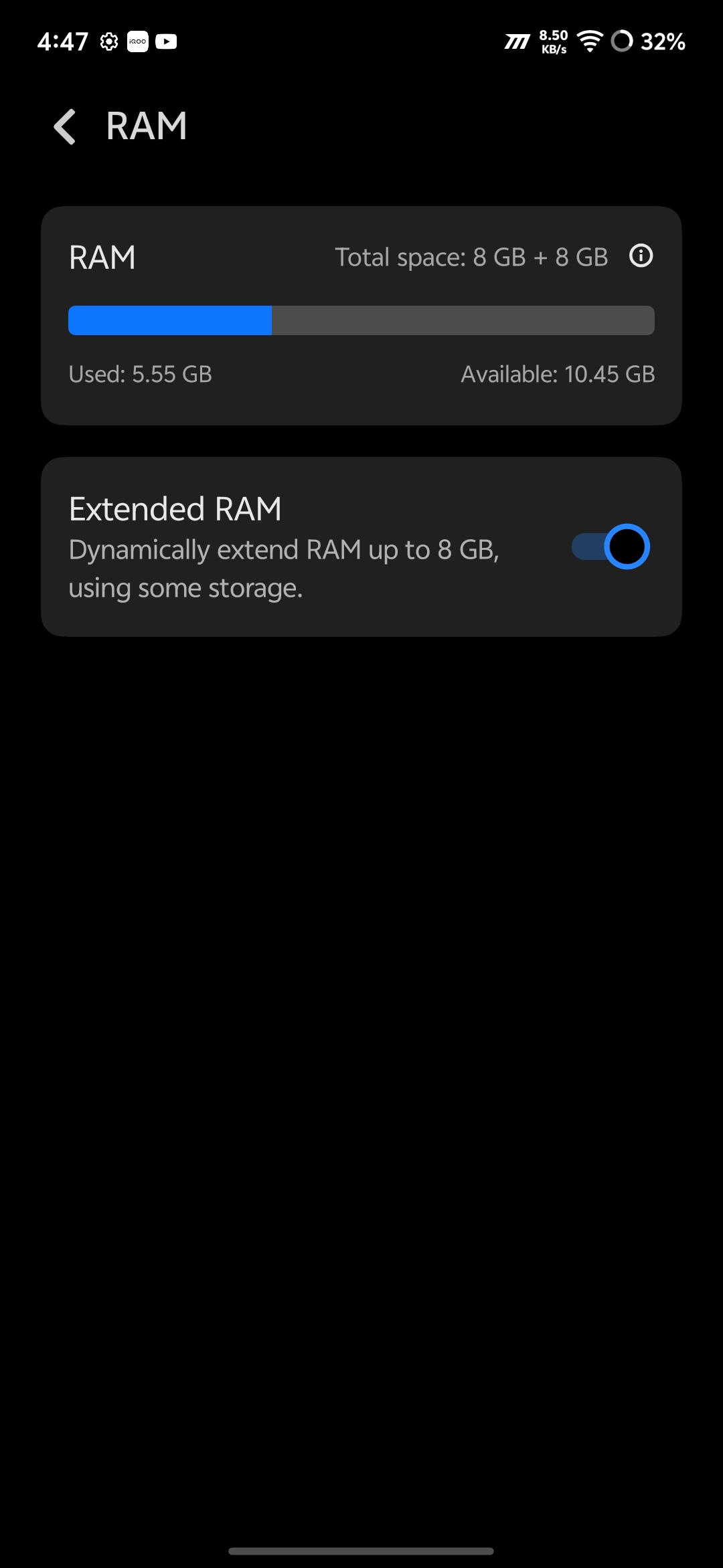 On RAM, my unit packs 8GB LPDDR4X RAM, and I've expanded it with an additional 8GB Dynamic RAM — giving me an effective 16GB to work with. Head to Settings > RAM & Storage > Extended RAM to enable this on your unit too.