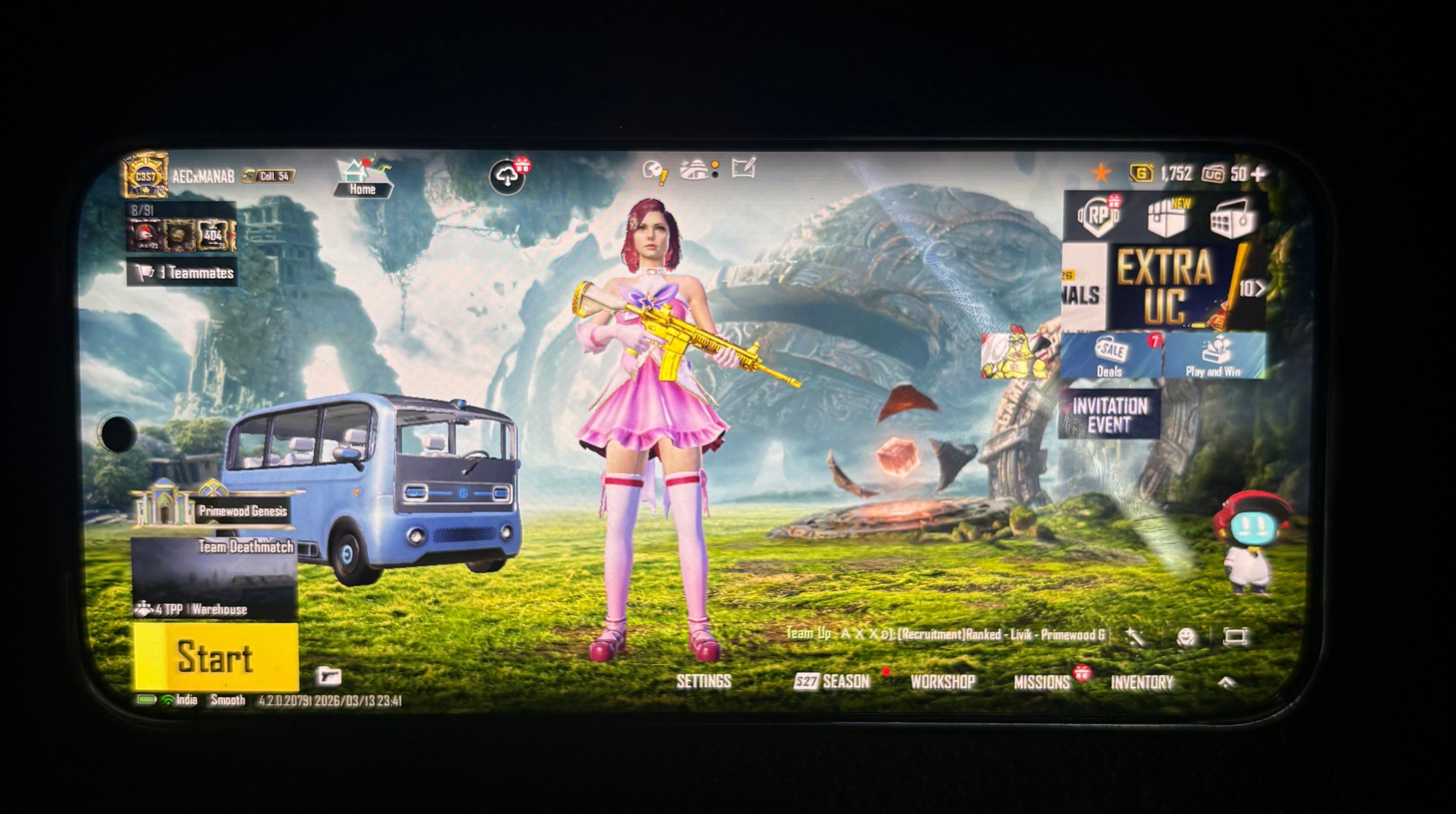 During my long BGMI livestream sessions on this device, the performance was really impressive. It ran smoothly most of the time with consistent FPS, making the gameplay enjoyable.