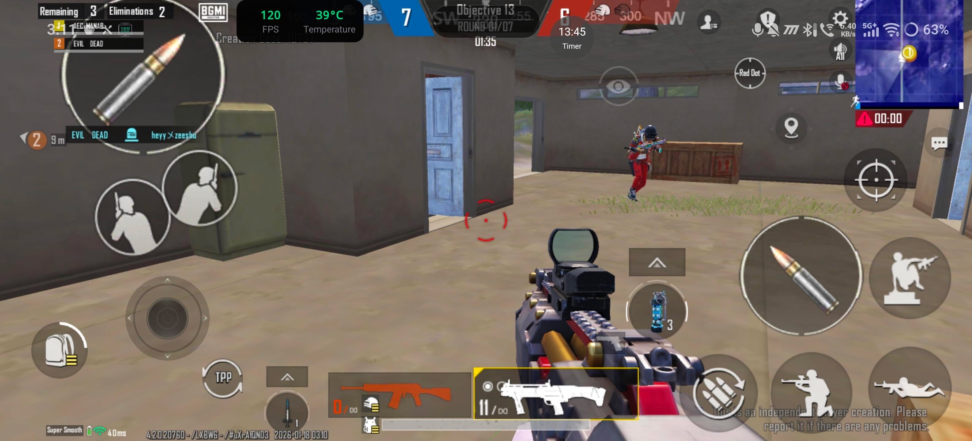 Even with screen recording ON, there was no lag during fights. I took 3 kills easily, and the FPS stayed constant at 120 the whole time. Gyro Scope Sensors also working very well