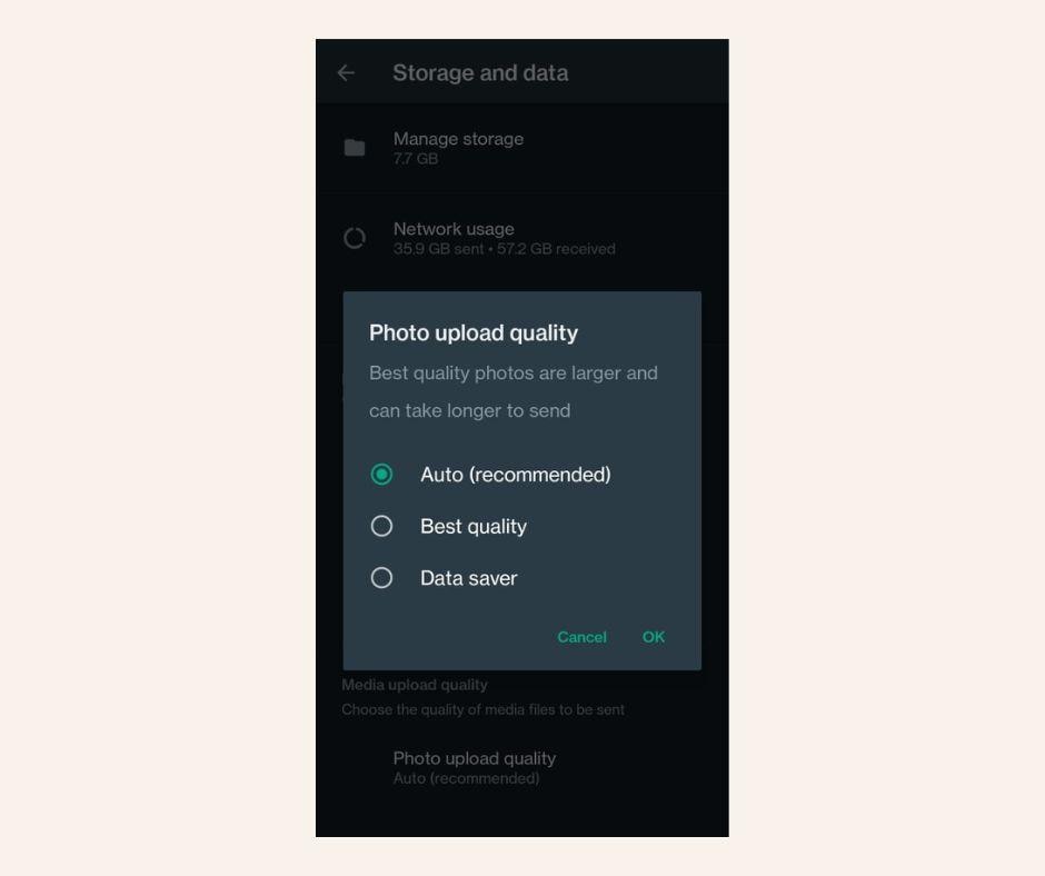 WhatsApp also allows users to set limits on the quality of downloading media. To do this, open WhatsApp settings Tap Storage & data From the options available under media download quality, set to Automatic, Best quality, or Data saving.