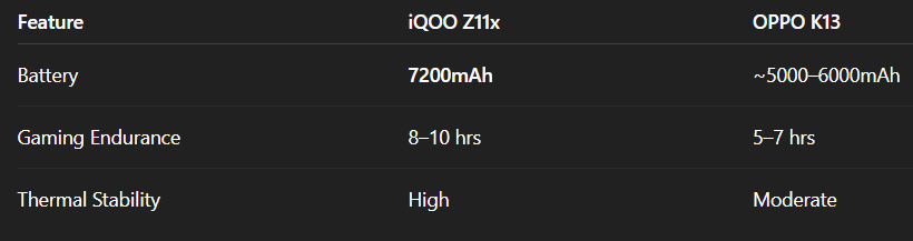 👉 Winner: iQOO Z11x (gaming-focused optimization)