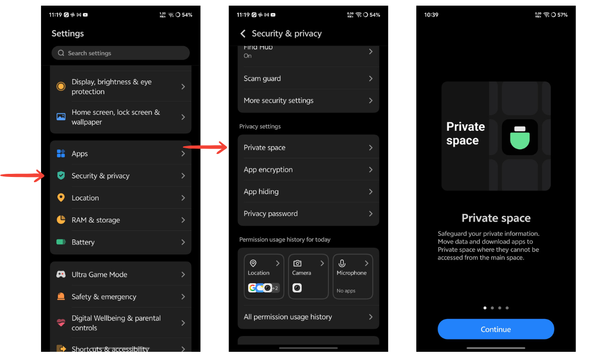 This is one of those features you don't know you need until you do. Private Space creates a completely separate environment on your phone — its own apps, photos, and files — protected by a unique PIN or fingerprint, fully encrypted and hidden from your main profile.