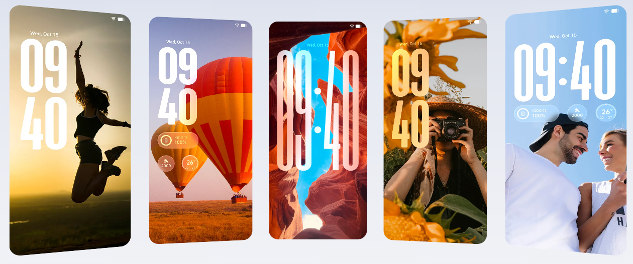 OriginOS 6 gives the lock screen a serious upgrade. You get richer clock styles, mixable elements, and depth effects that shift with parallax as you tilt the phone — giving a premium 3D feel that genuinely surprises people the first time they see it.