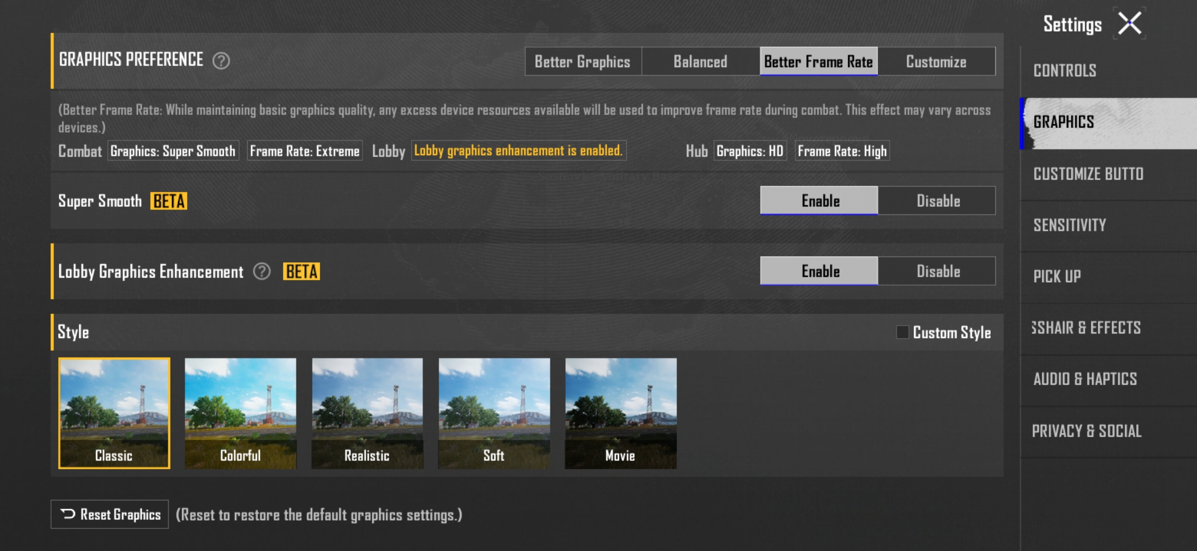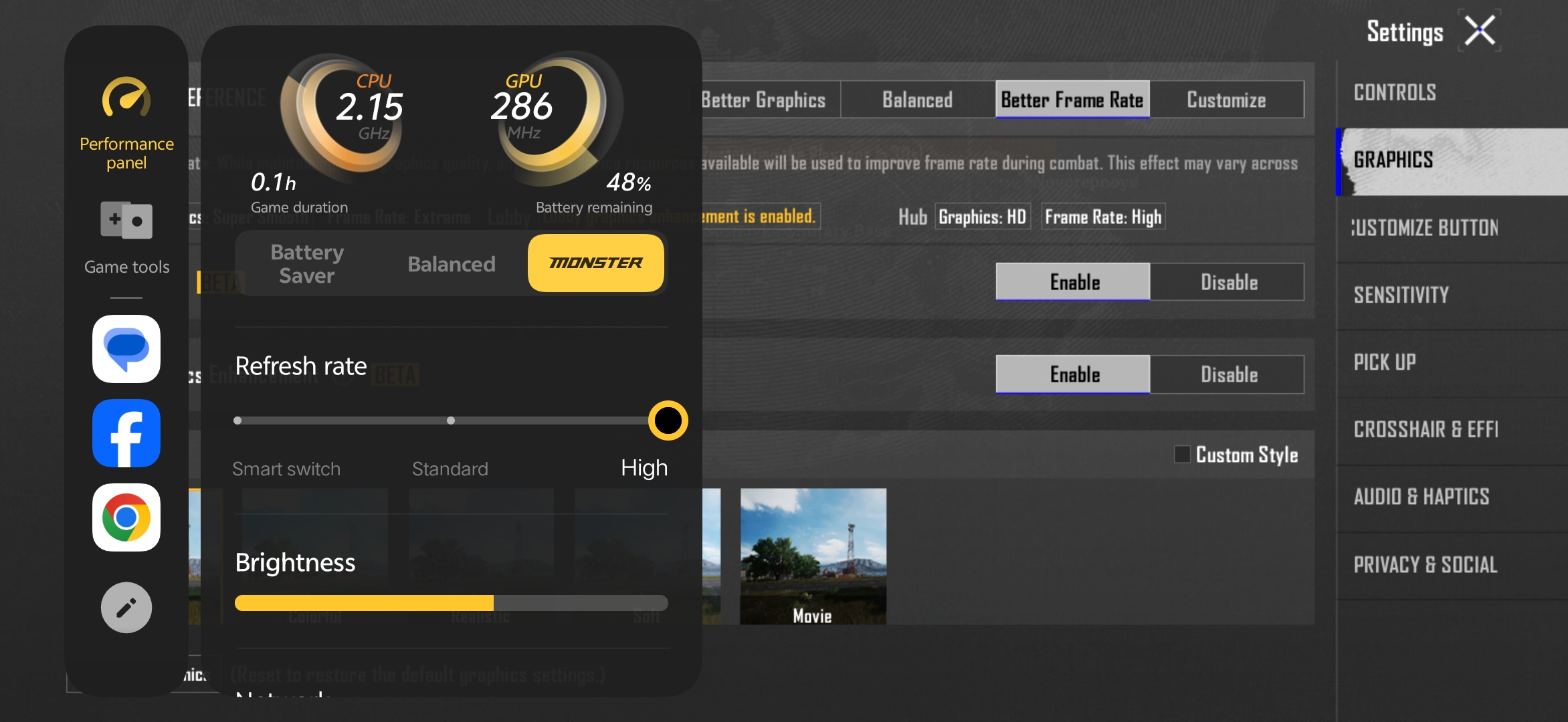 BGMI runs comfortably at HD graphics and high frame rate (60fps) settings with stable frame rates. For those who want to push further, the Ultra Game Mode has you covered with dedicated tools: