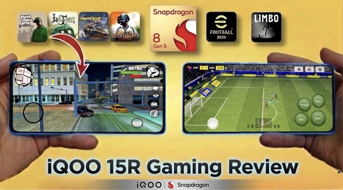 Hey Questers, I am Manab Today I am sharing my gaming experience with the iQOO 15R I have been using this device for around 15 days and tested it with games like BGMI, GTA SanAndreas and eFootball to see how it performs in reallife gaming Overall, the experience has been smooth and enjoyable, with consistent performance across different gamesSo I thought of sharing my complete gaming review with you all.This review is based on my personal usage and real gaming experience with the iQOO 15R I have tested some popular games to see how the device performs in real life without any hype or exaggerationI mainly focused on performance, stability, heating and overall gaming experience during my usage If you are a gamer or planning to go for the iQOO 15R, this review might help you understand the device better.