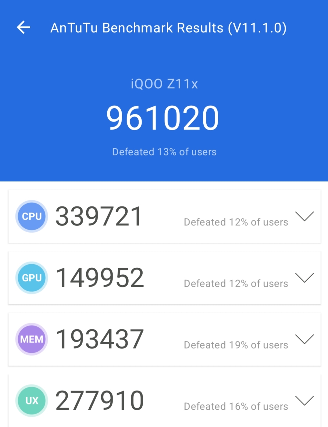 The AnTuTu score hits around 9.6L–10L, which is seriously impressive for the under ₹20K segment.
