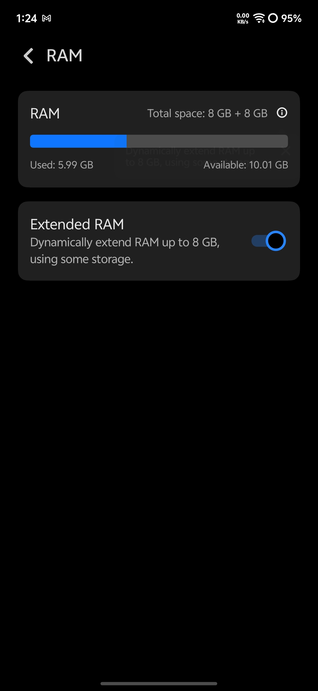 One thing I set up from day one — Extended RAM. My unit has 8GB RAM, and I've expanded it with an additional 8GB of Dynamic RAM using storage, giving me an effective 16GB to work with. This keeps apps alive in the background longer and makes switching between them noticeably smoother. If you haven't enabled this yet, head to Settings > RAM & Storage > Extended RAM.
