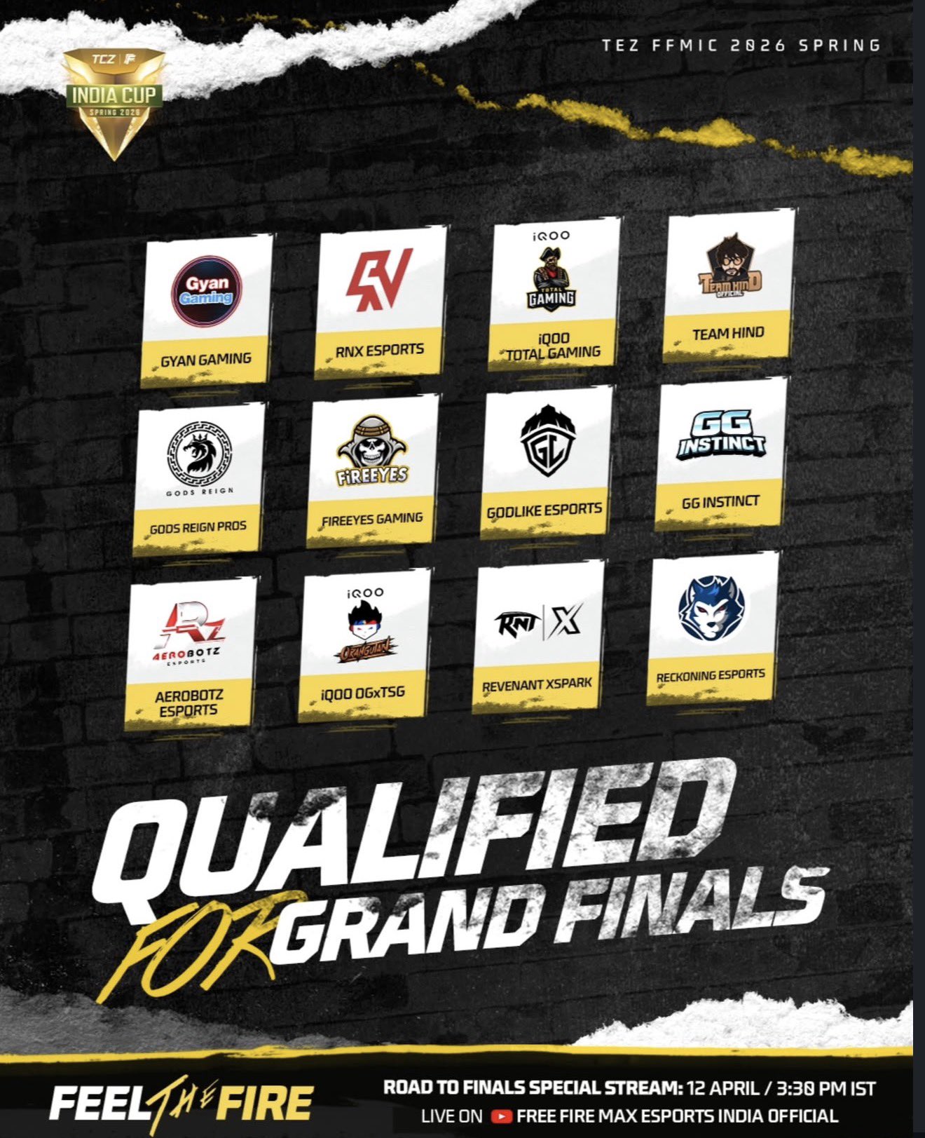 Here are the 12 finalists of the Free Fire Max India Cup 2026 Spring:
