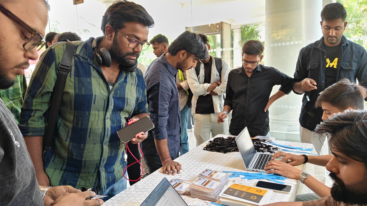 Questers started coming to an event at around 11:00 AM, and the banner was ready in welcoming them, they received the iQOO Finger sleeves, Questers ID cards and Qool Stickers, as they lined up in the registration desk. 🎁.