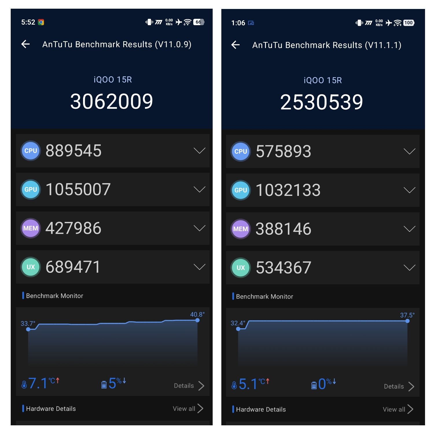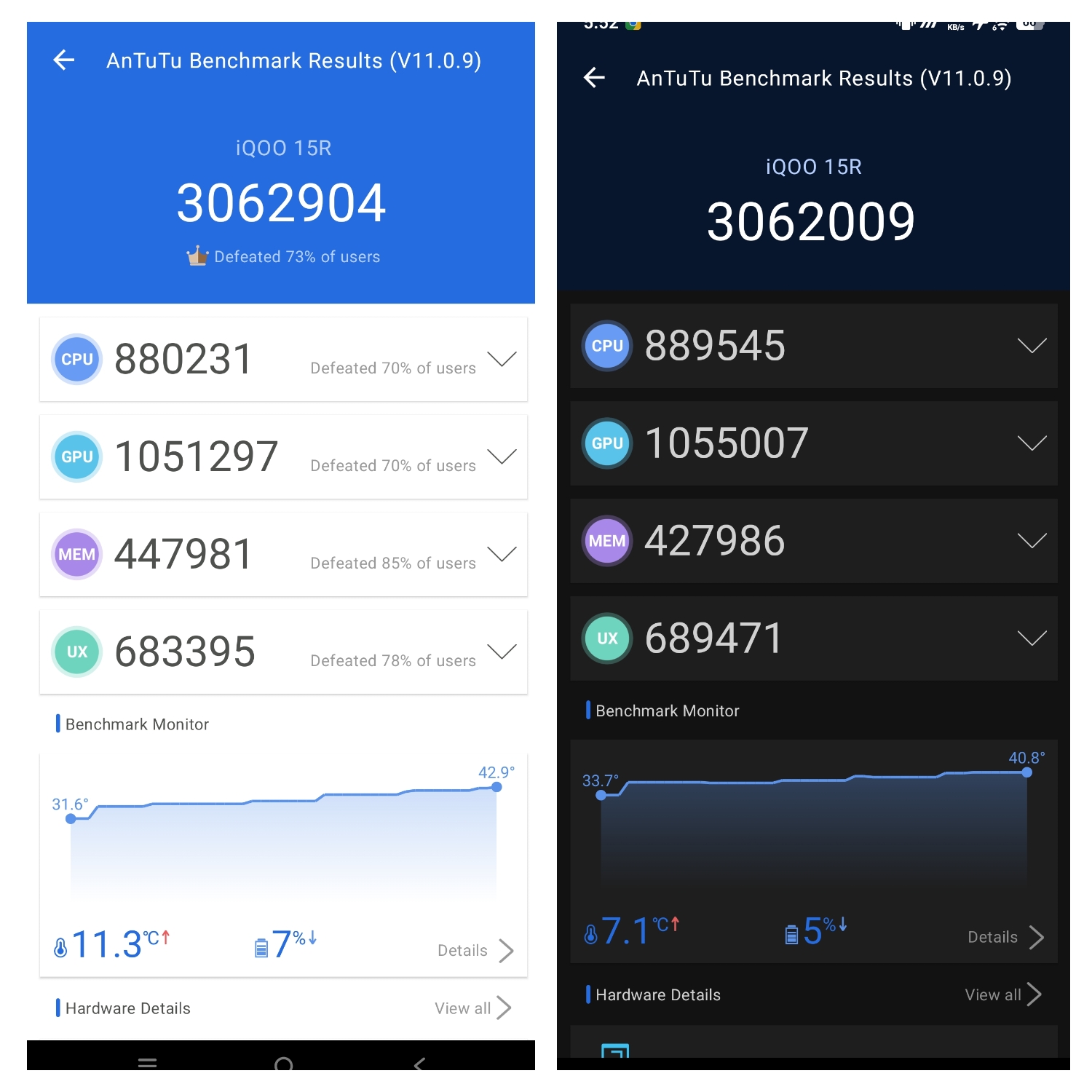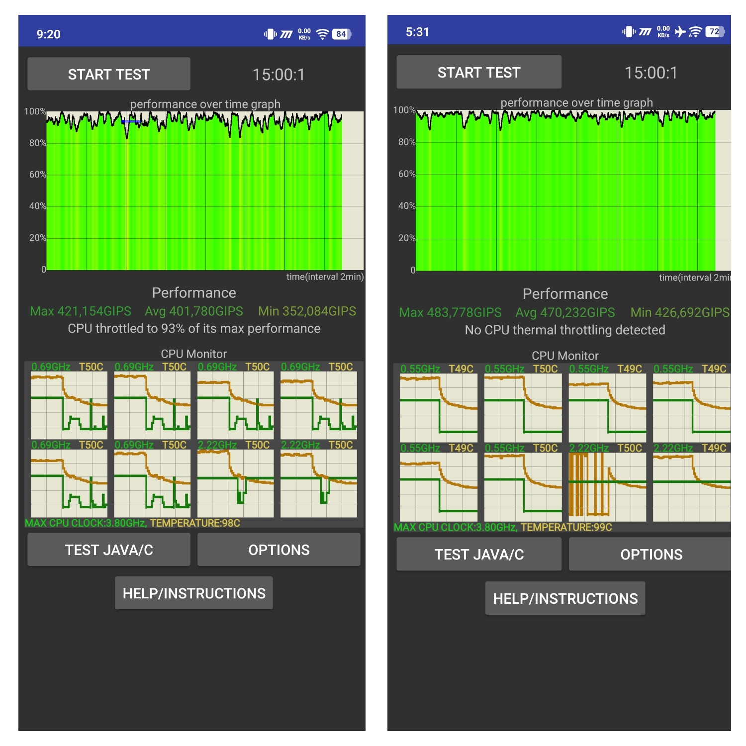 • Conclusion - same performance but runs 2.1°C cooler and consumed less battery ✅