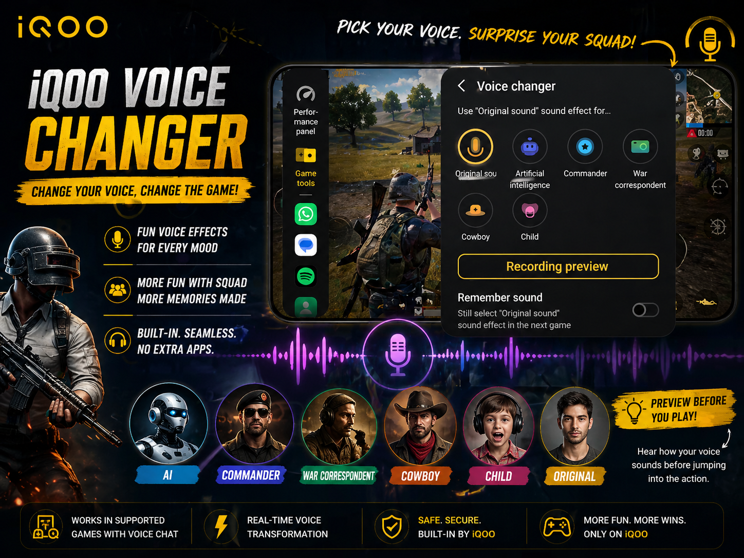 Unlike third-party apps, built-in iQOO Voice Changer offers: