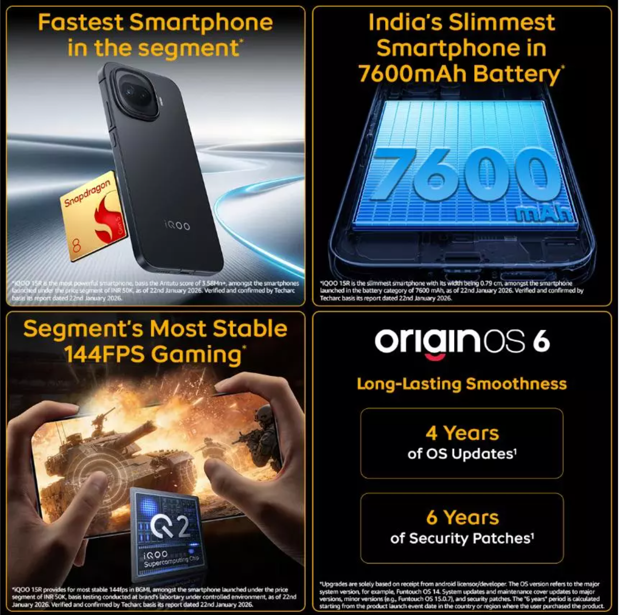 This reduces waiting time and lets users return to gaming faster.The phone also includes advanced cooling technology that helps manage heat during long gaming sessions.Instead of overheating quickly, the device maintains comfortable temperatures while keeping performance stable. Combined with 4D gaming vibration, which adds immersive haptic feedback, the overall gaming experience feels premium.In final verdict, the iQOO 15R is a true gaming beast. It offers flagship power, stable FPS, ultra-fast touch response, a smooth 144Hz display, long battery life, and effective cooling. If gaming is your top priority, the iQOO 15R stands out as one of the best choices in its segment.