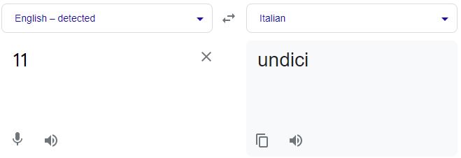2. The number 11 in English is its very own number, but that's not the case in all languages. For example, in Italian, the number 11 is a compound number. A compound number is a grouping of multiple numbers. In this case, with Italian, it is undici, which is uno (one) and dieci (ten) combined to make the number eleven.