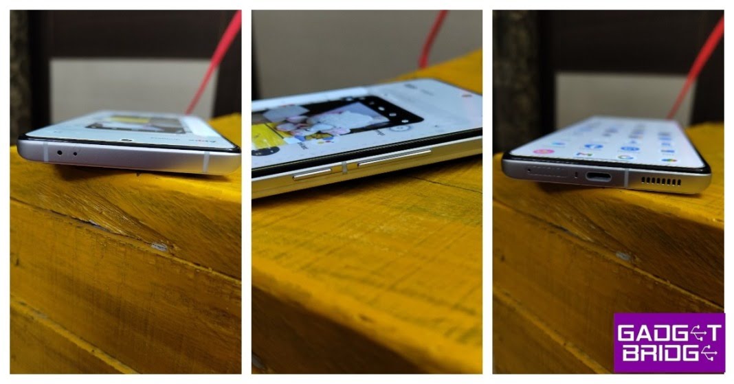 On the right side of the metal frame are the power and volume controls, and on the bottom edge, there is the SIM tray, main speaker grille and the USB Type-C connector.