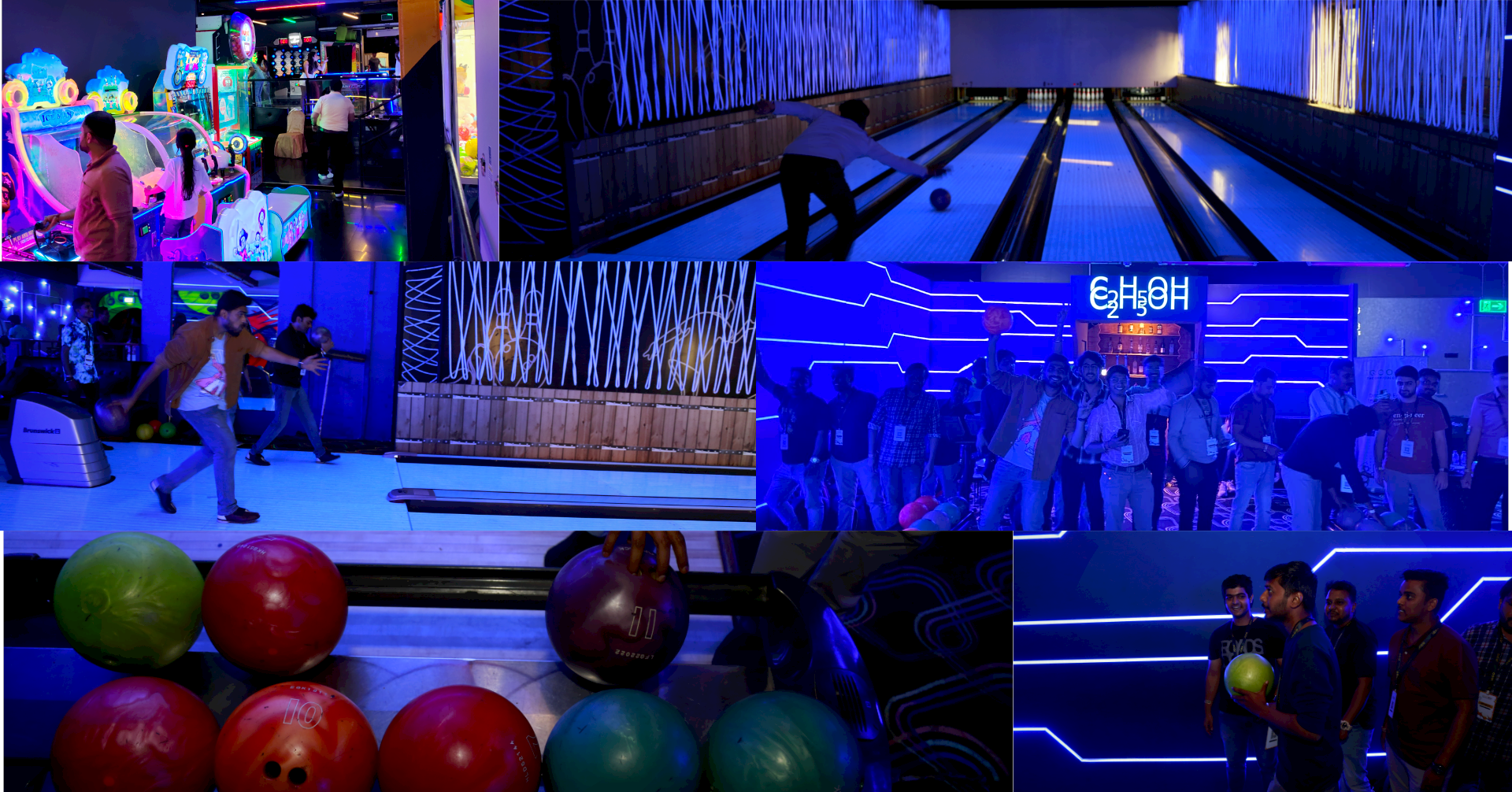 We just went for an exploration of the SMAAASH after a buffet lunch😋, then went go-karting🏎️ and took some really cool photos and videos, and then we moved to the bowling alley for some real competitive bowling games🎳. We played 10 rounds of bowling, accompanied by soft drinks and snacks🥤.